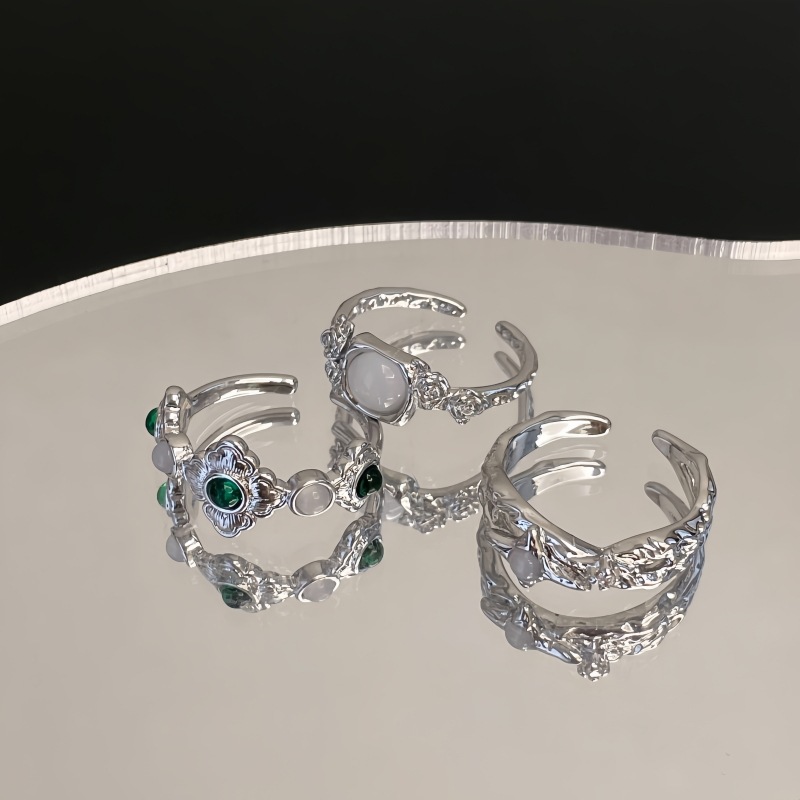 オパールシリーズローズオープンリングリング高级感インスタ冷たい风しわ不规则新中国式フィンガーリング女