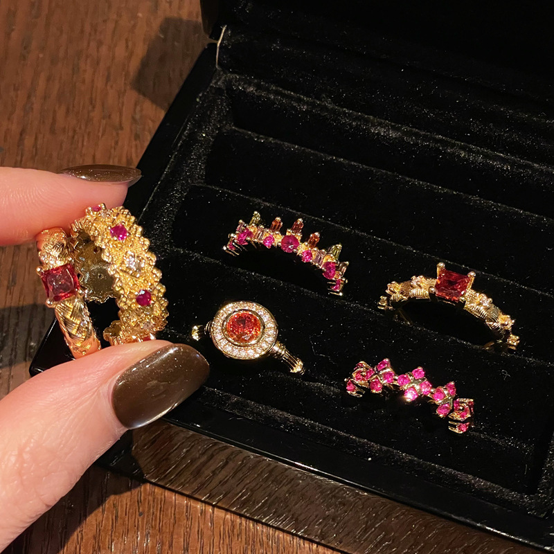 繁花似锦中古vintage宫廷风轻奢气质锆石开口戒指小众设计感指环