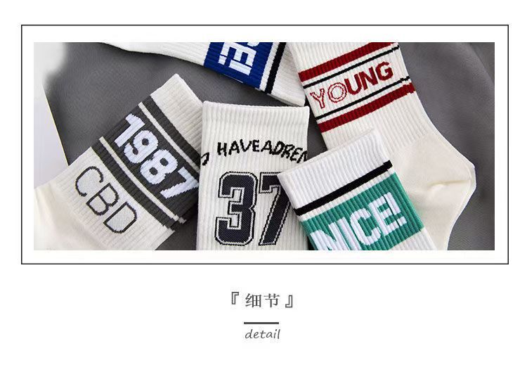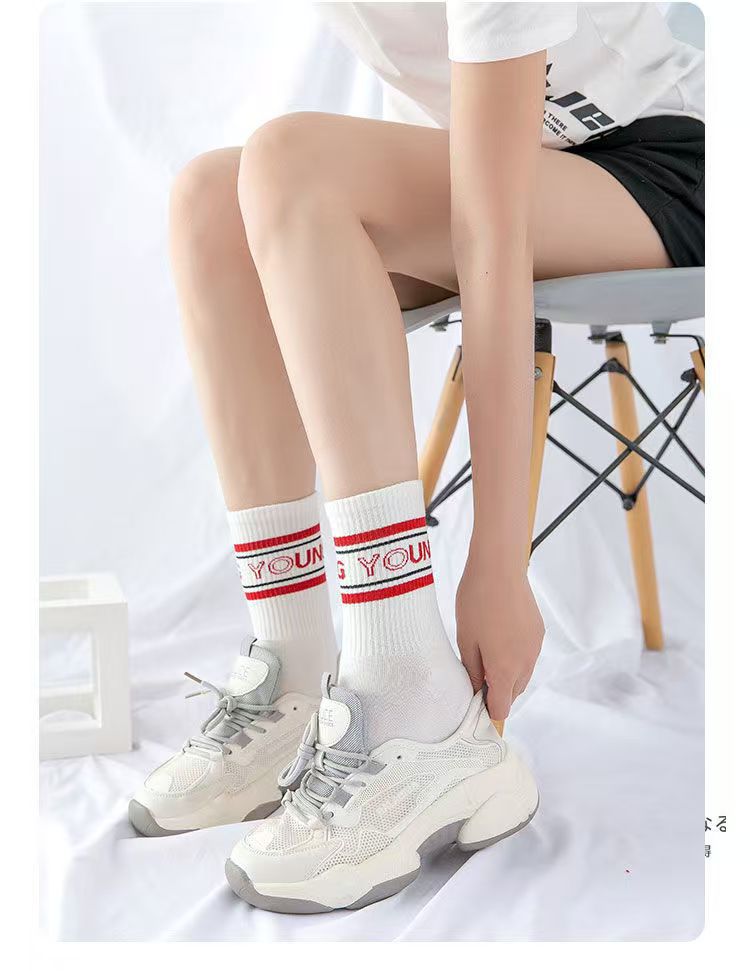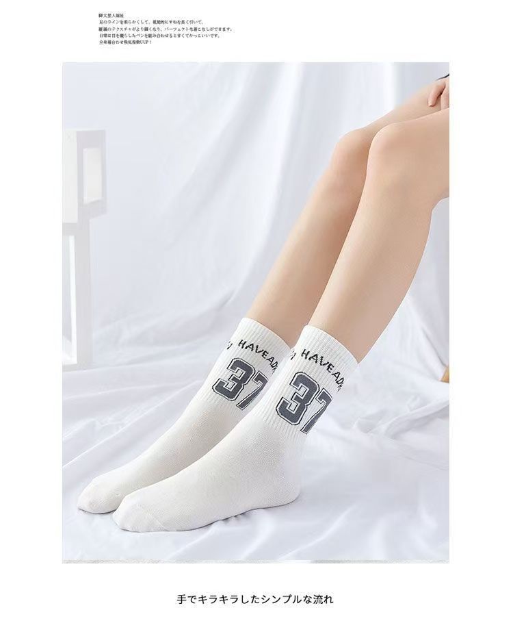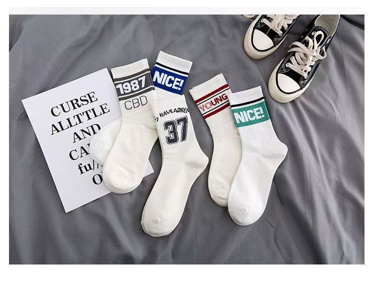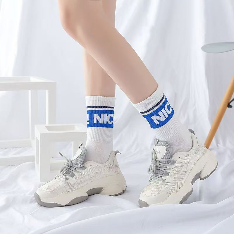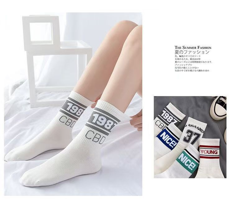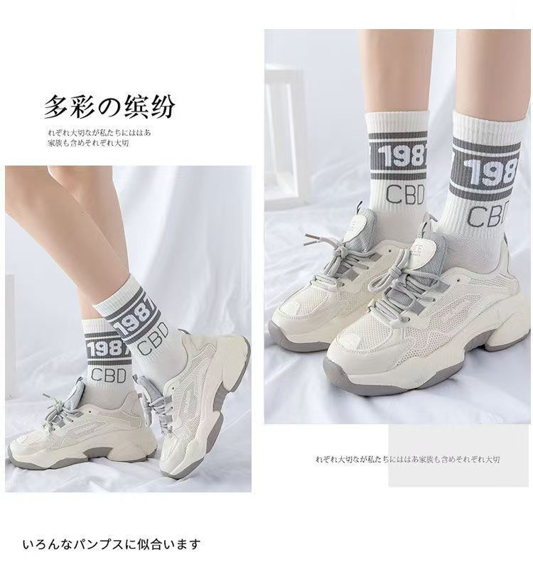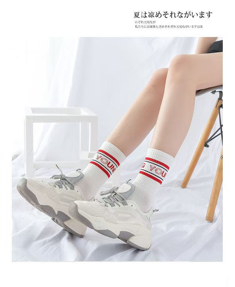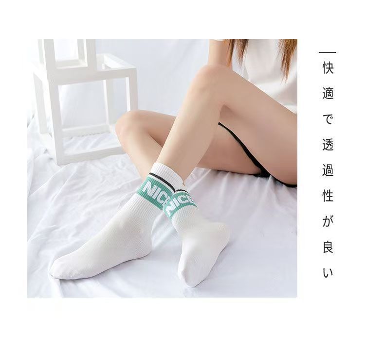 白い靴下ins女性韓国版中筒日系百合学院風アルファベットネット赤学生長筒女性靴下春秋