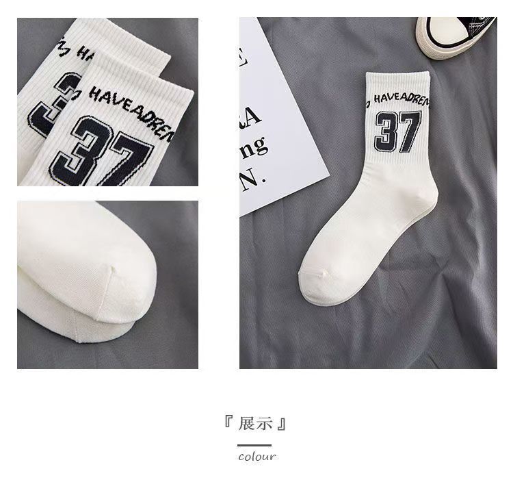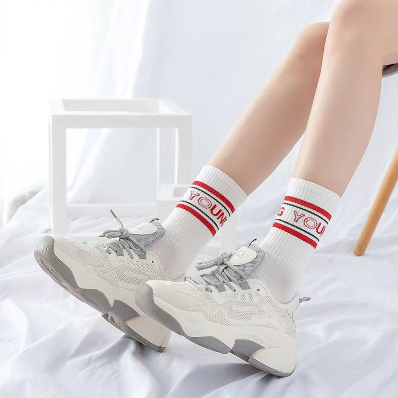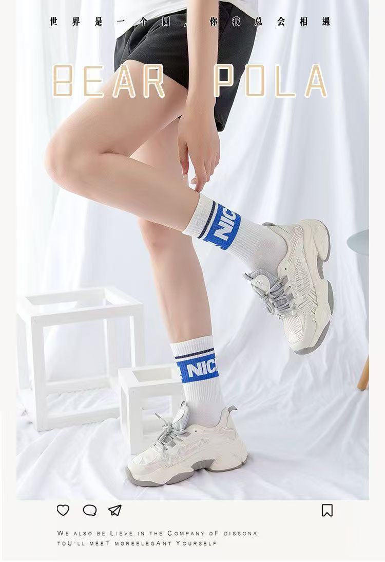 靴下女ins潮秋冬春百合学院風中筒靴下シンプルで甘い少女スポーツ靴下