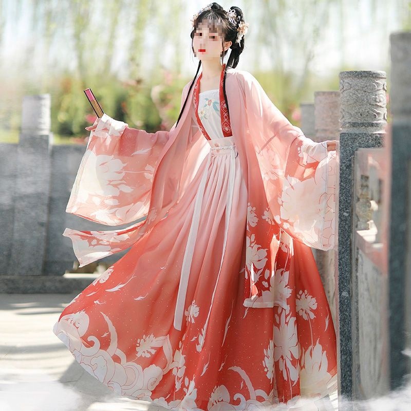 赤い魏晋風漢服女【風華絶代】逸超仙古装大袖シャツ古風広袖流仙スカート