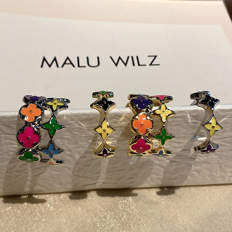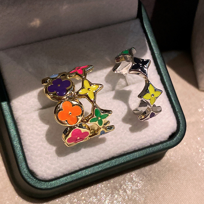 ファッション銅耳ボタン幸運四葉花輪イヤリング耳ボタンメーカー直販高品質大衆デザイン感イヤリング