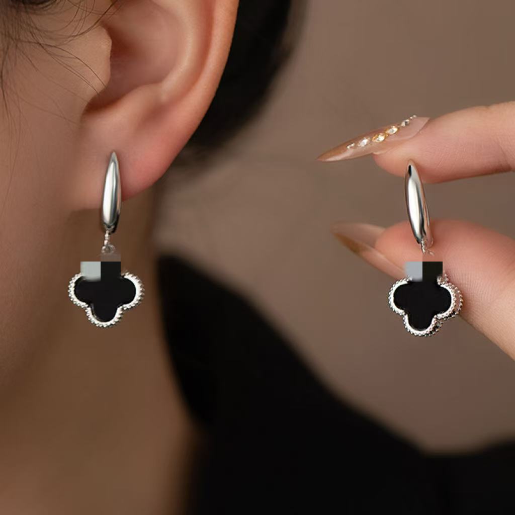 国境を越えた売れ筋の日本と韓国の女性用ピンイヤリング、シンプルな新しい四つ葉のクローバーバッグイヤリング、トレンディな気質のバッグイヤリング
