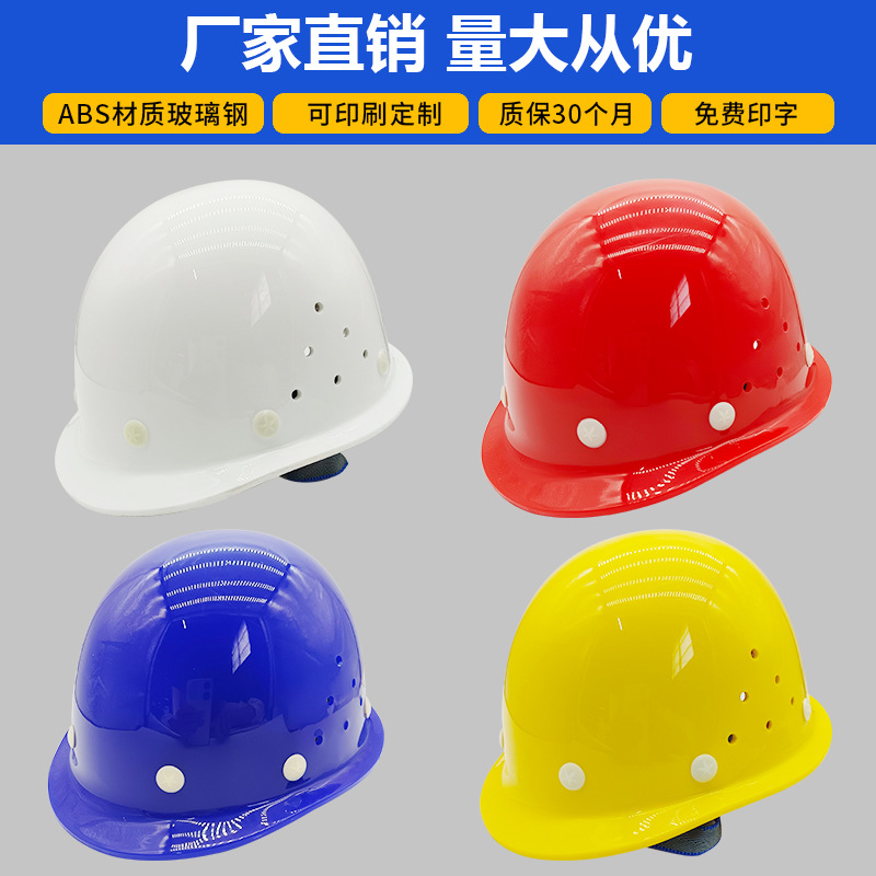 ガラス鋼衝突防止通気工事現場ヘルメット夏日焼け止め白色厚手工事ヘルメット印字メーカー卸売り