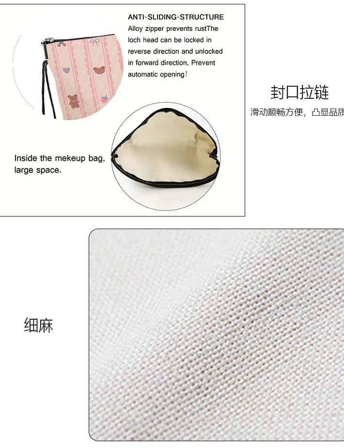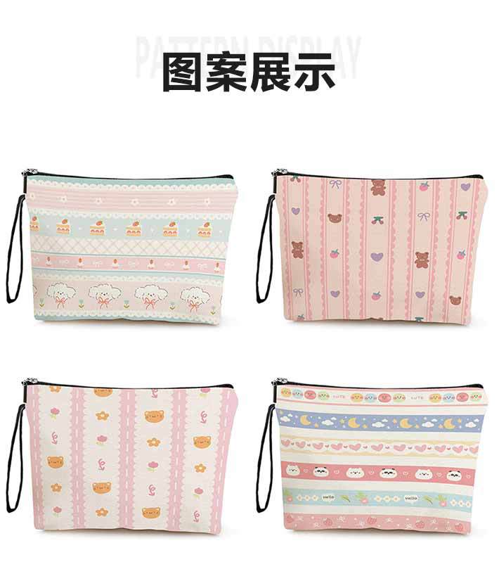 新品ストライプくま花ポーチ多機能両面立体化粧ポーチ自宅ファスナー洗面ポケット小銭入れ
