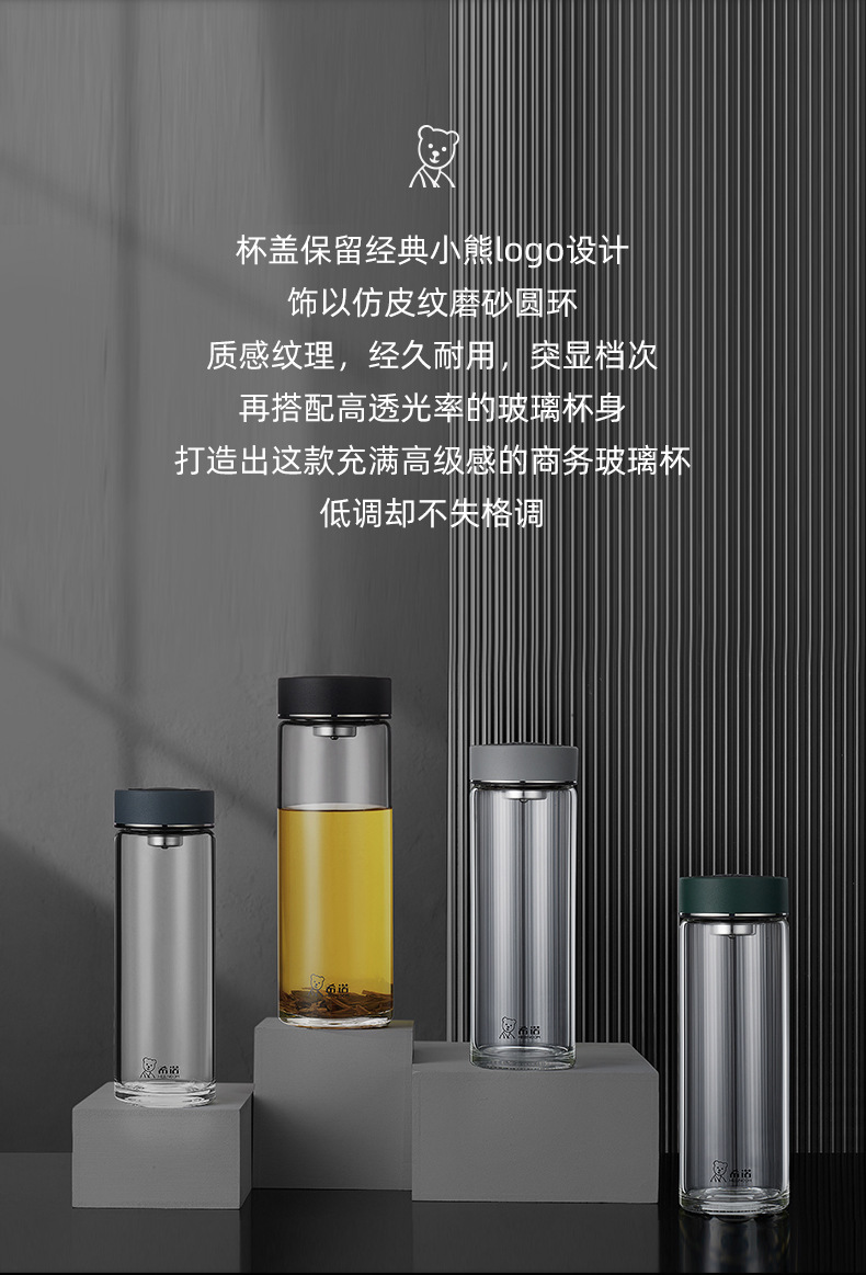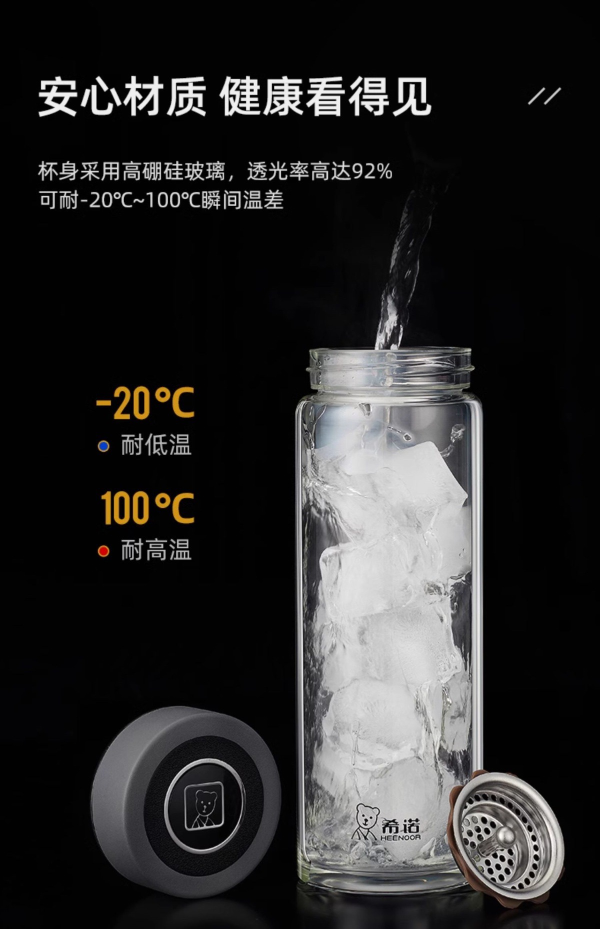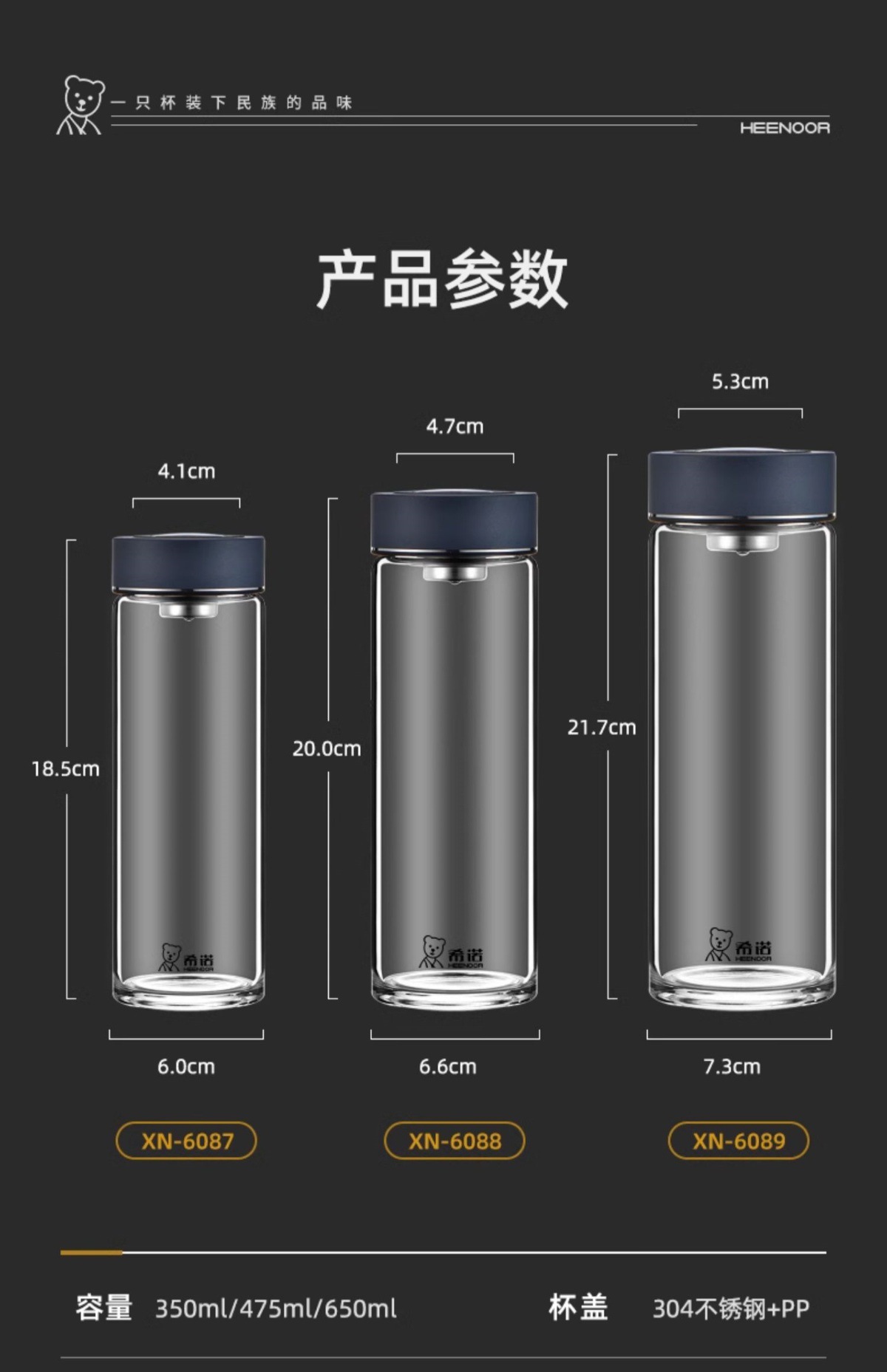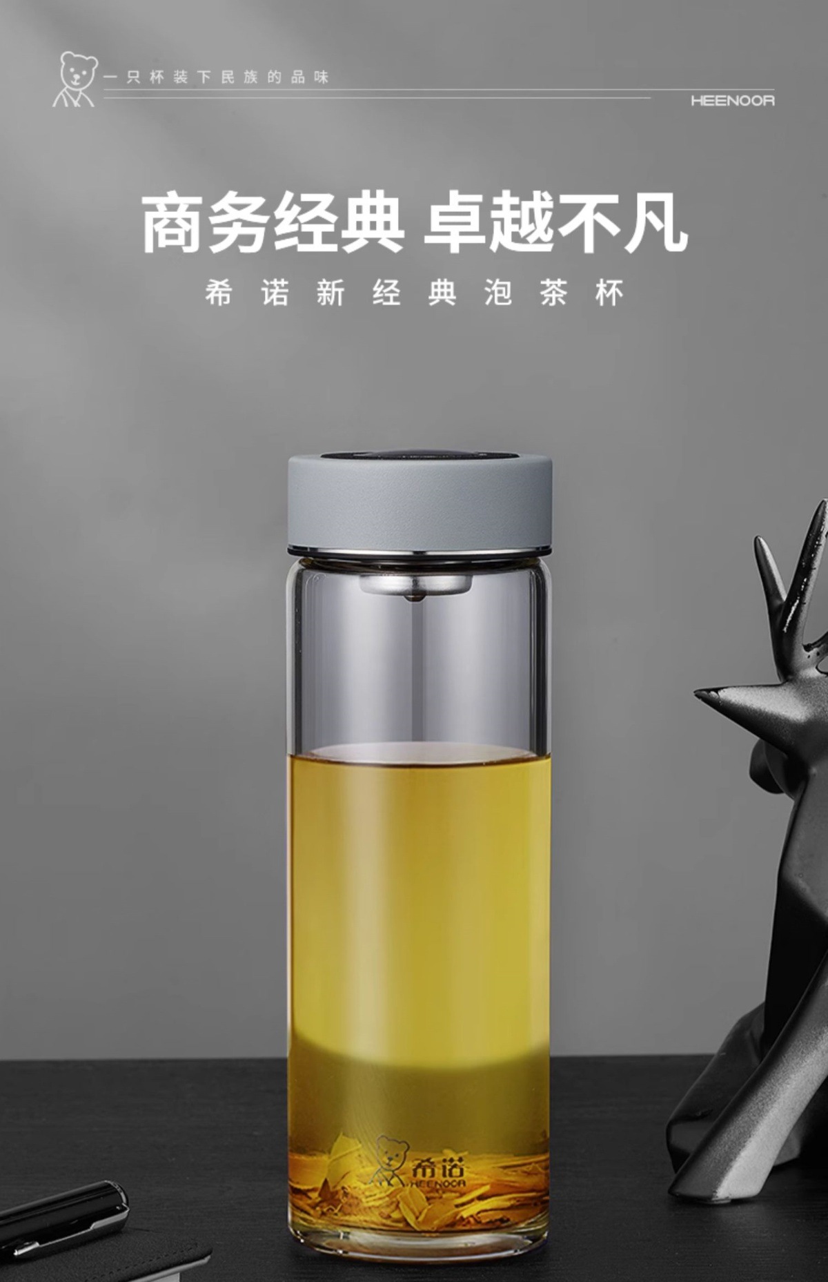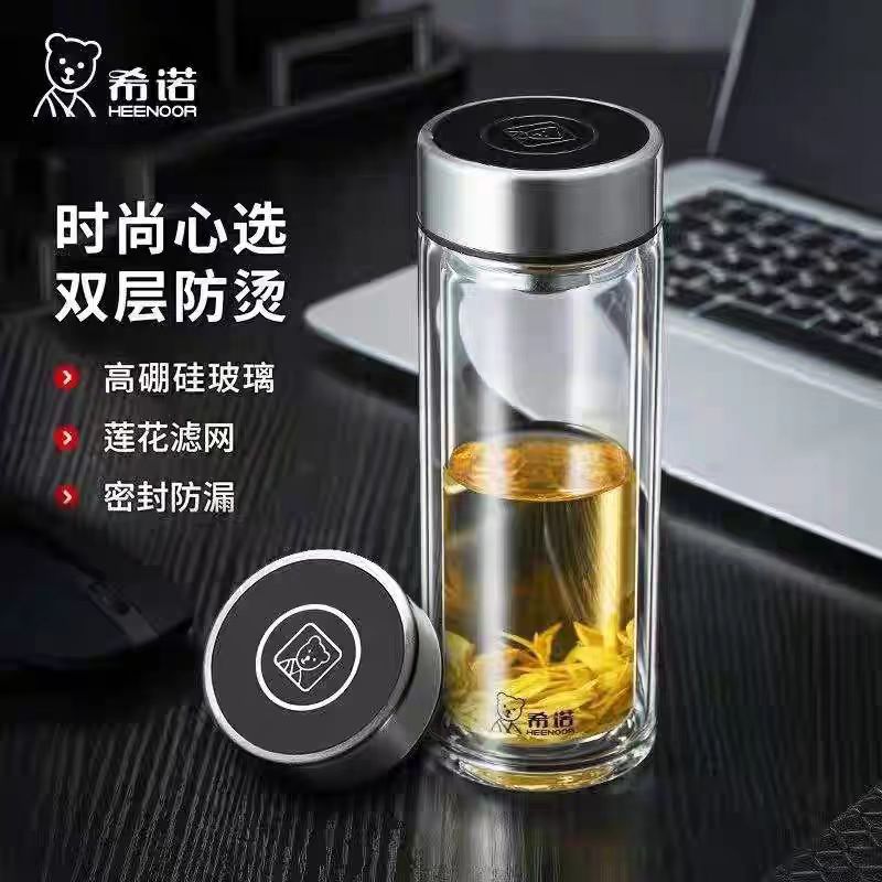 希诺双层玻璃杯男女便携商务办公车载礼品家用大容量简约泡茶杯子