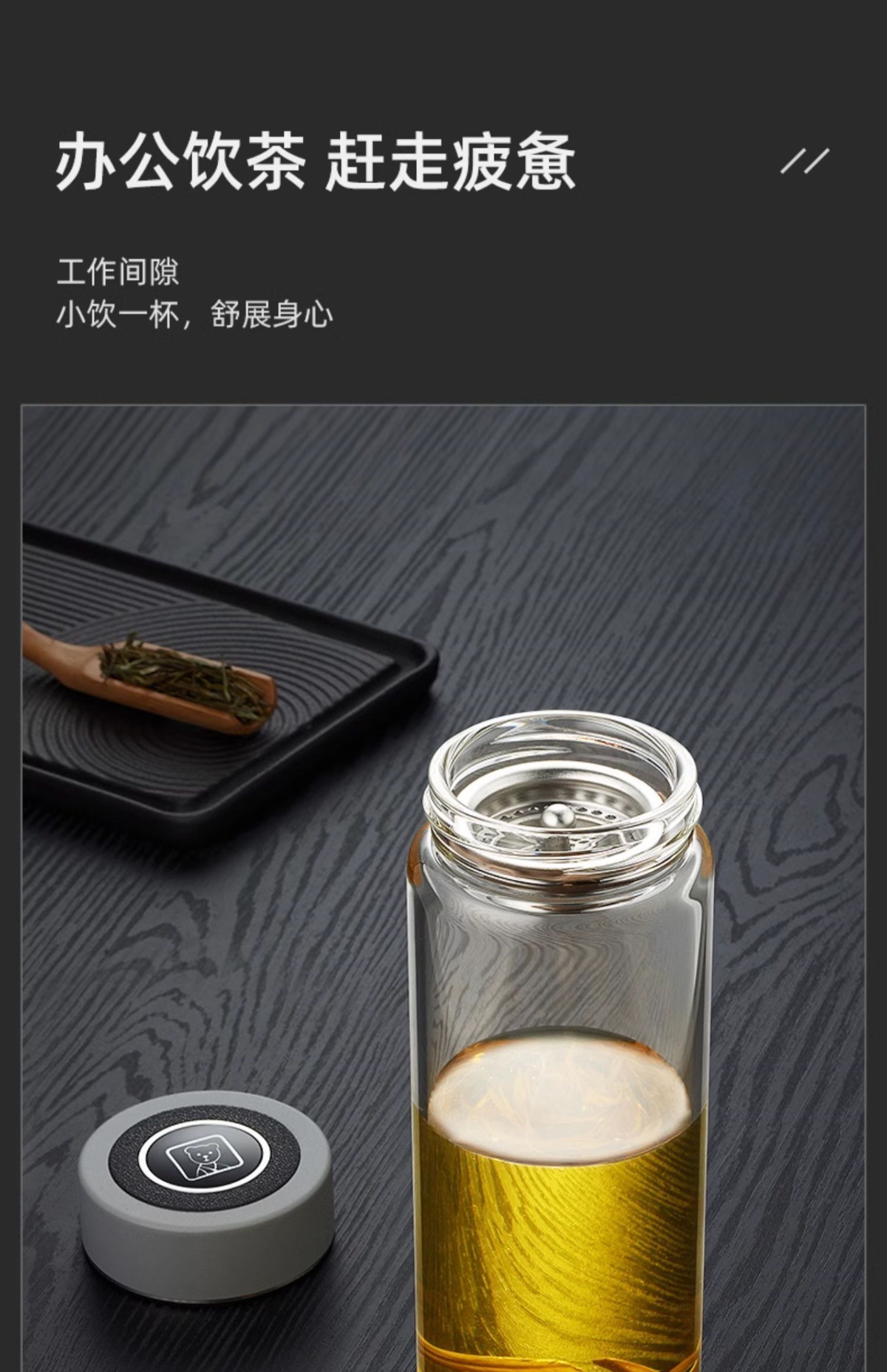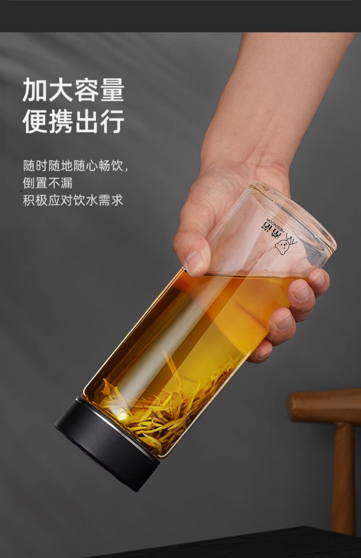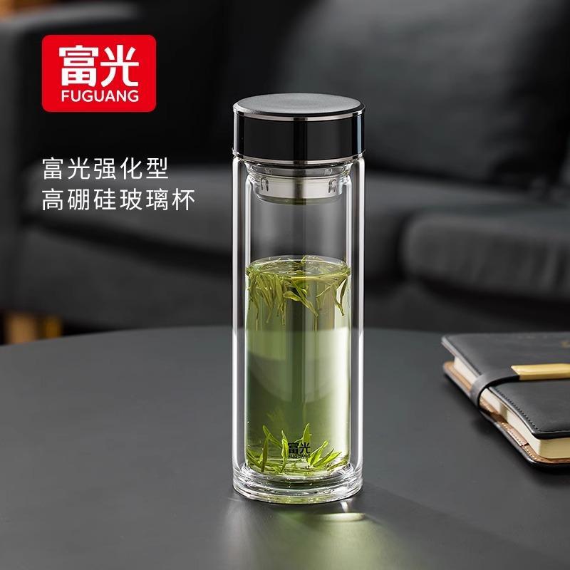 富光高ホウ素シリコングラス単層二重大容量男性ビジネスカップ茶水分離カップ車載