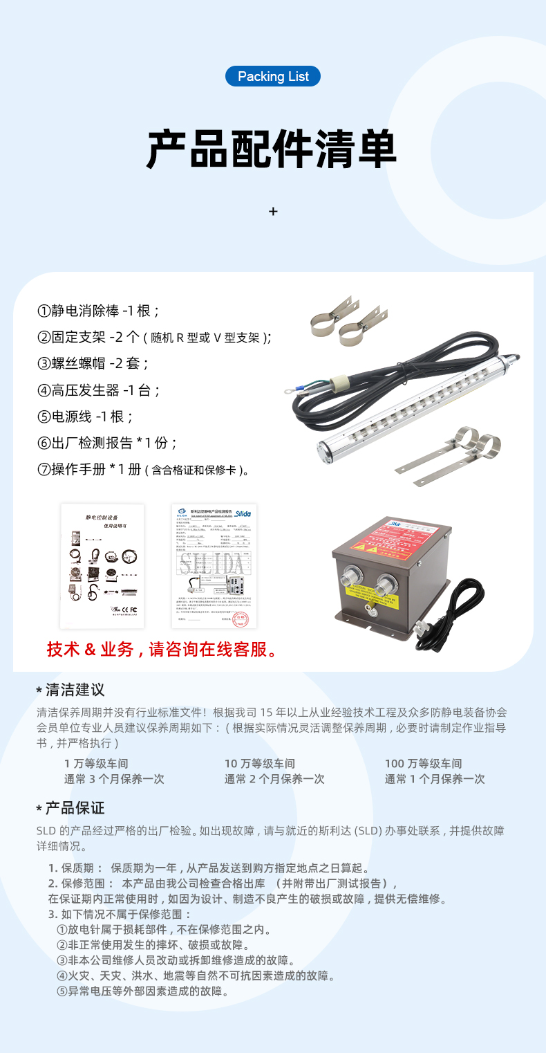 仕様 600mm以内ロッド+SLD-9009ジェネレーター,イオンロッドの延長ごとに100mmの費用がかかります,SLD-9009 ジェネレーター(7.0KV),シングルロッド(L≤600mm以内)