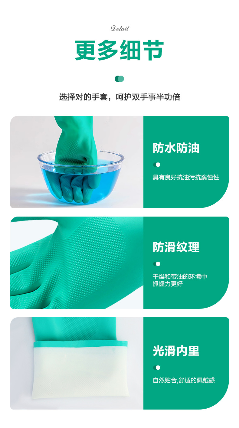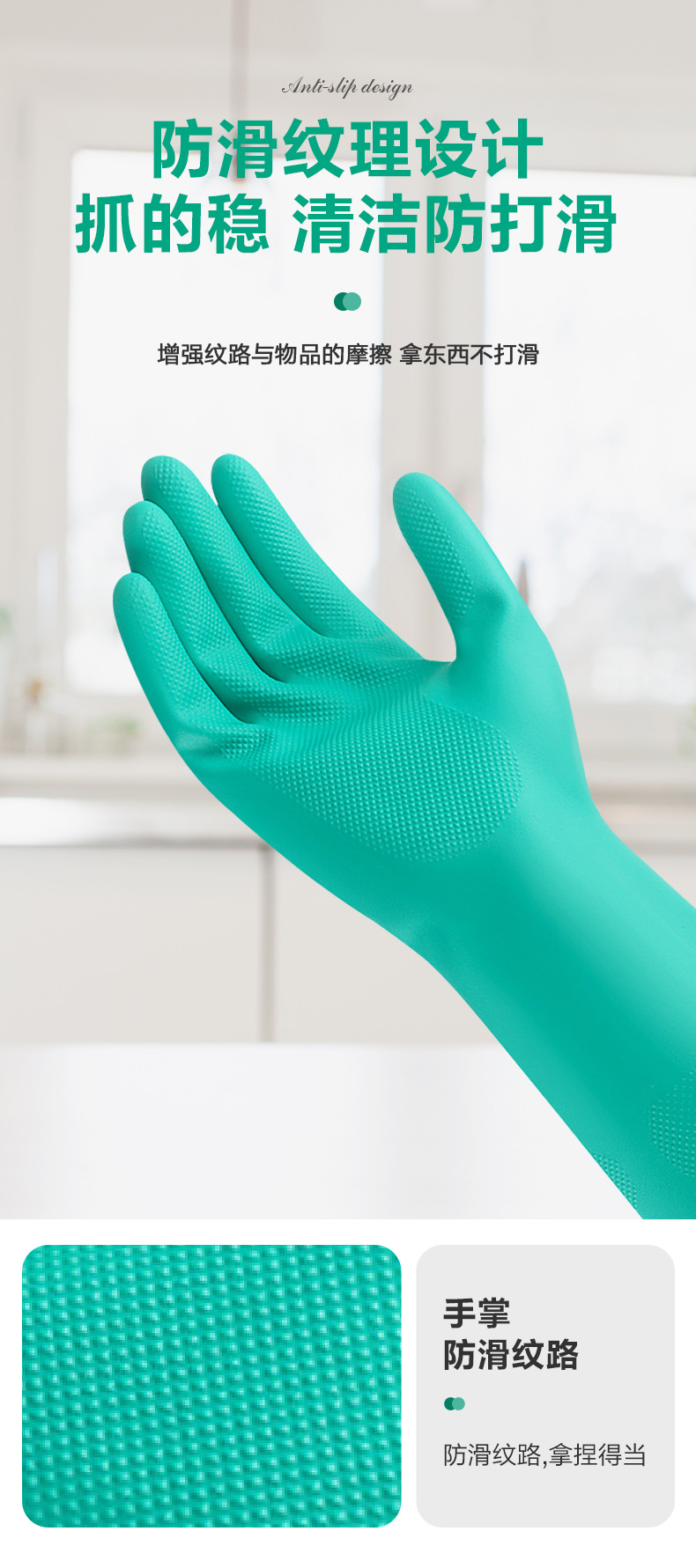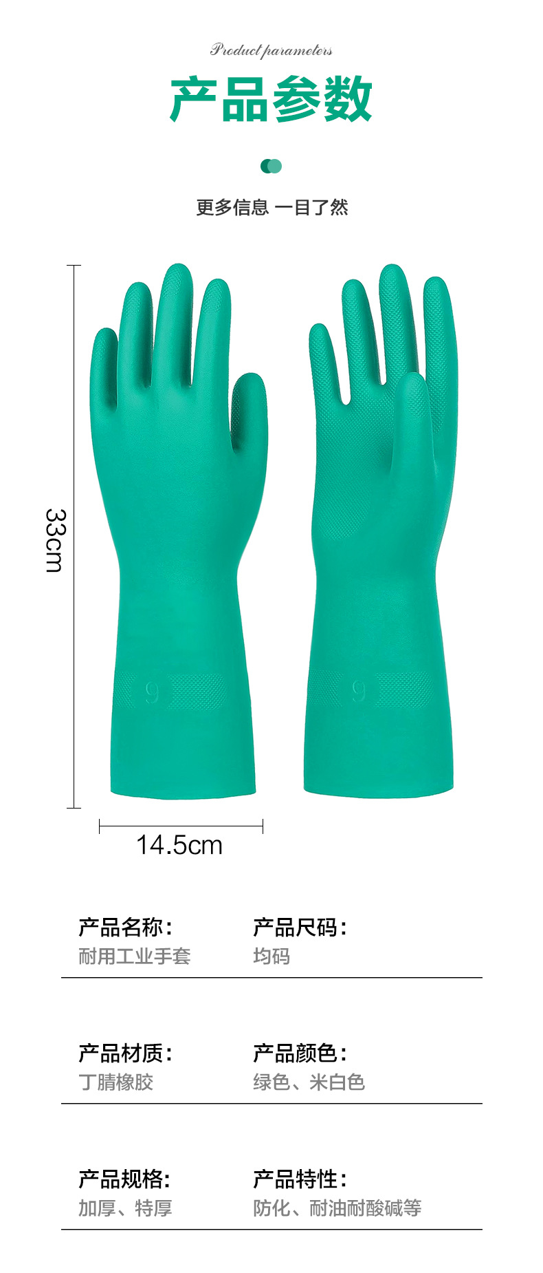 拓豊グリーンニトリルゴム手袋防油酸アルカリ家事皿洗い洗濯ゴム防化工業厚さ