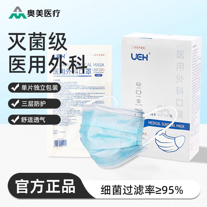Ogilvy 滅菌独立包装医療用サージカルマスク三層保護使い捨て医療グレードブルー病院と同じスタイル