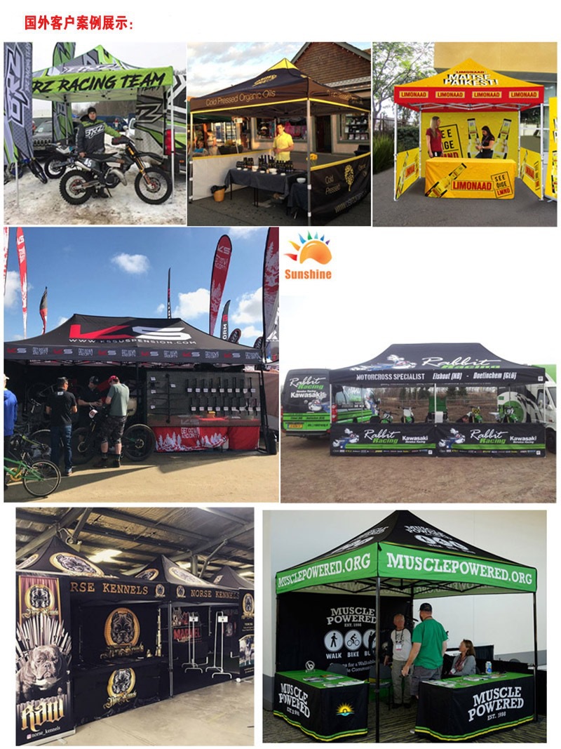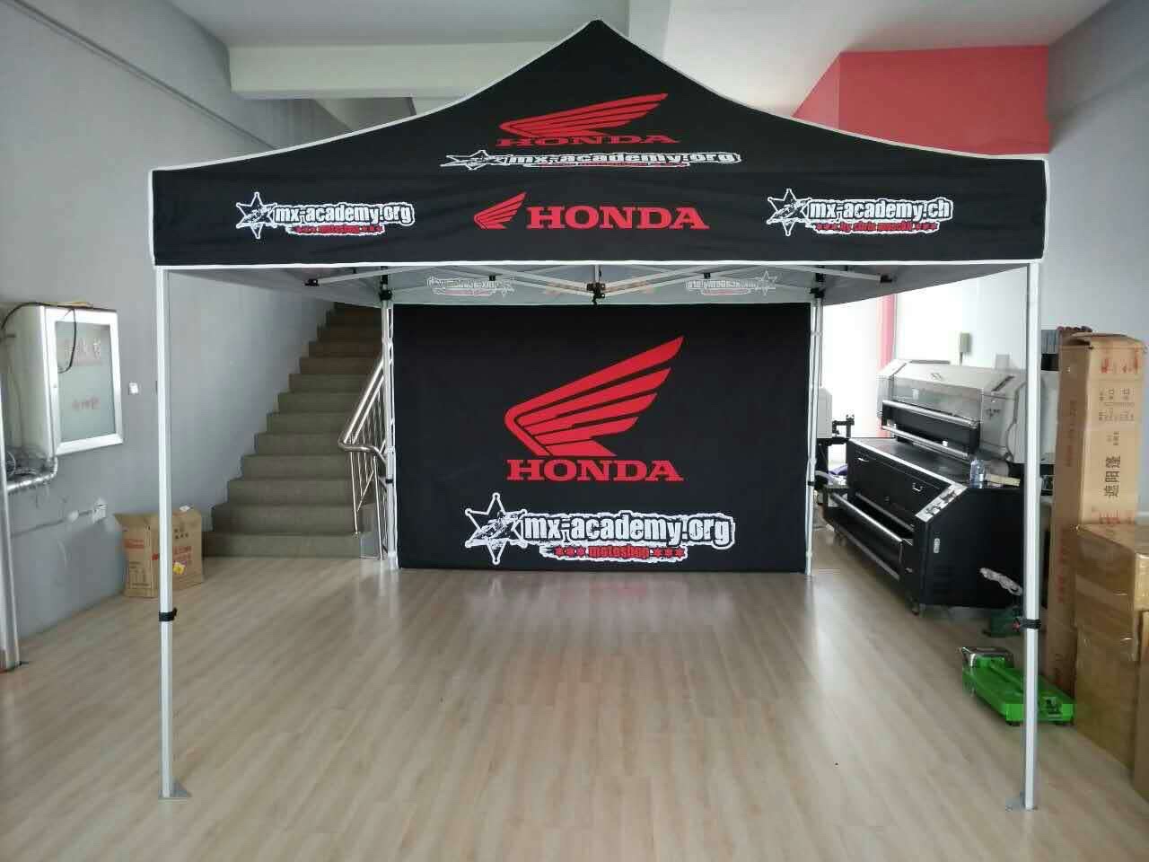 屋外の日除け棚の広告のテントは折り畳みして印刷して伸縮します。