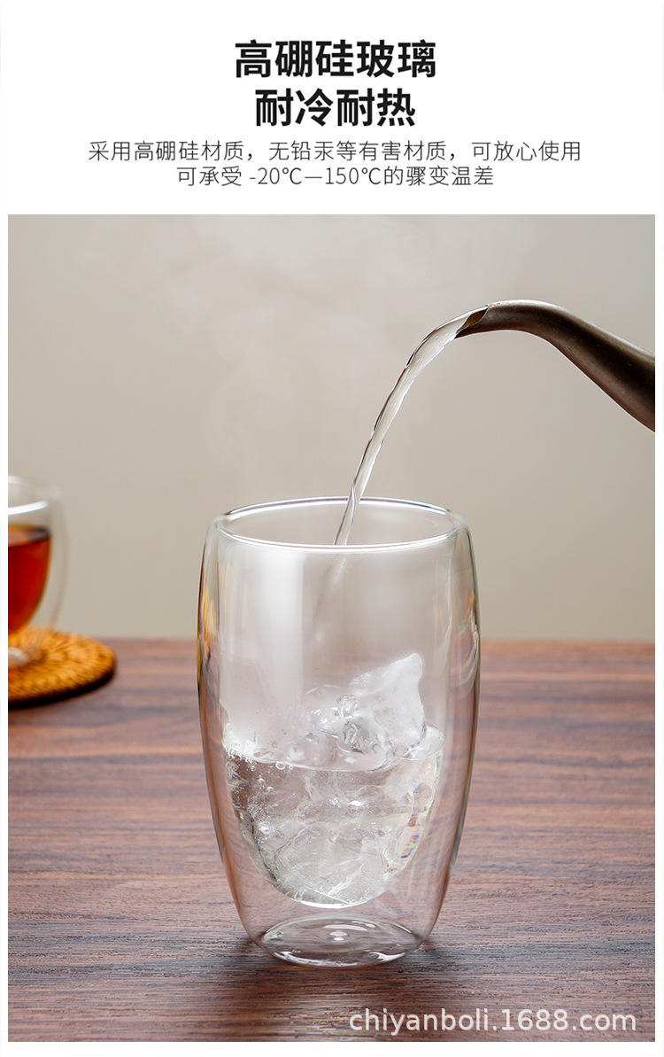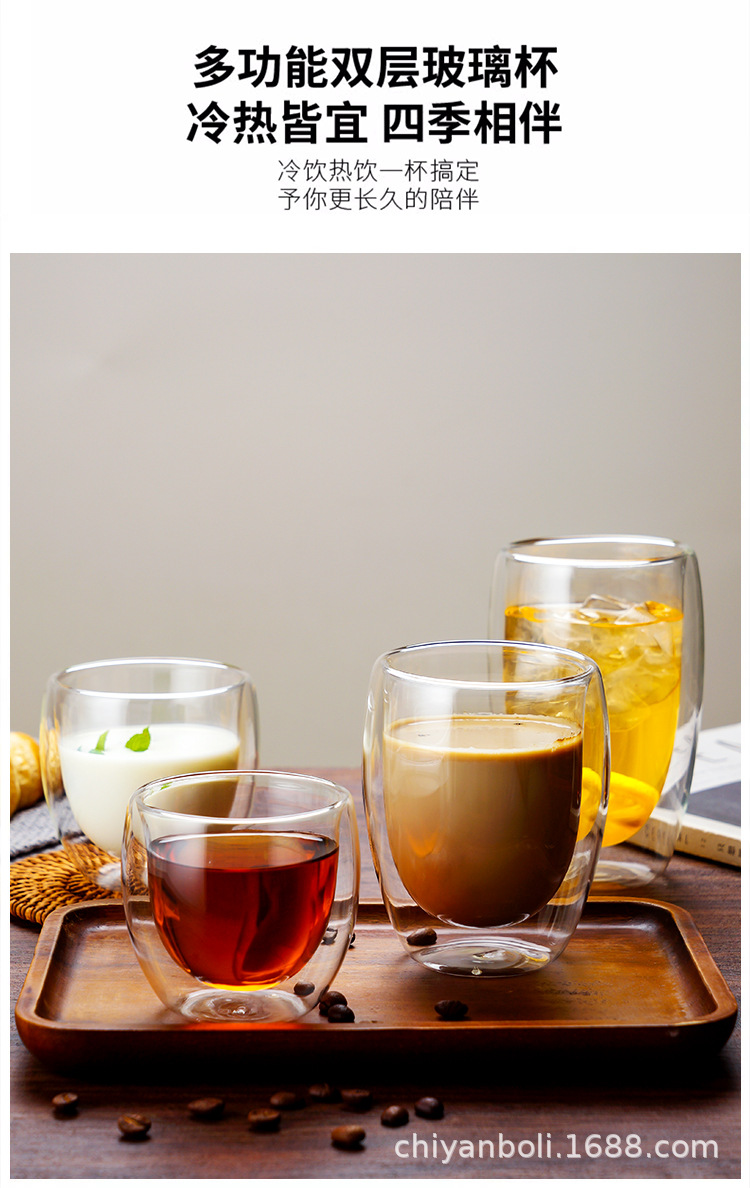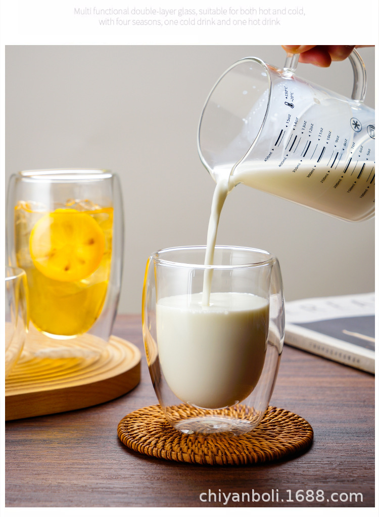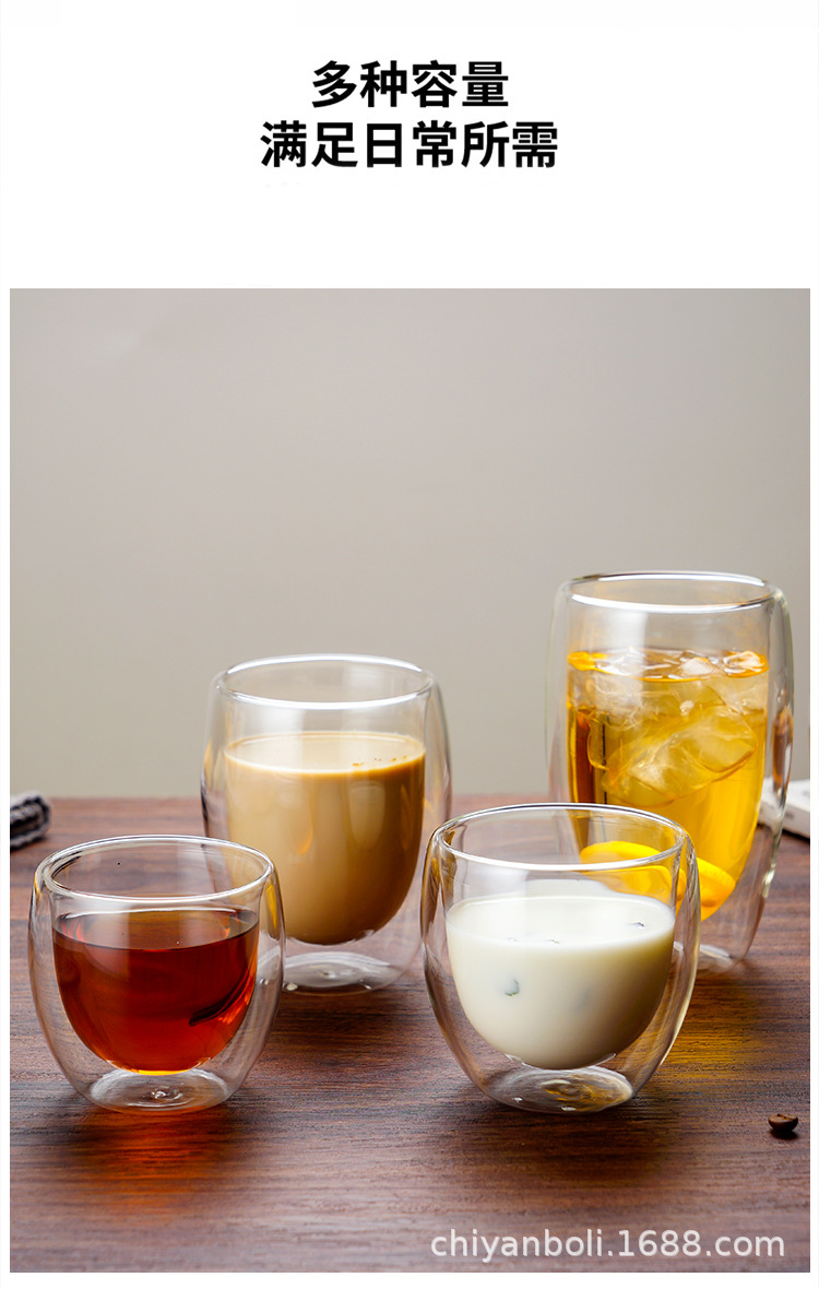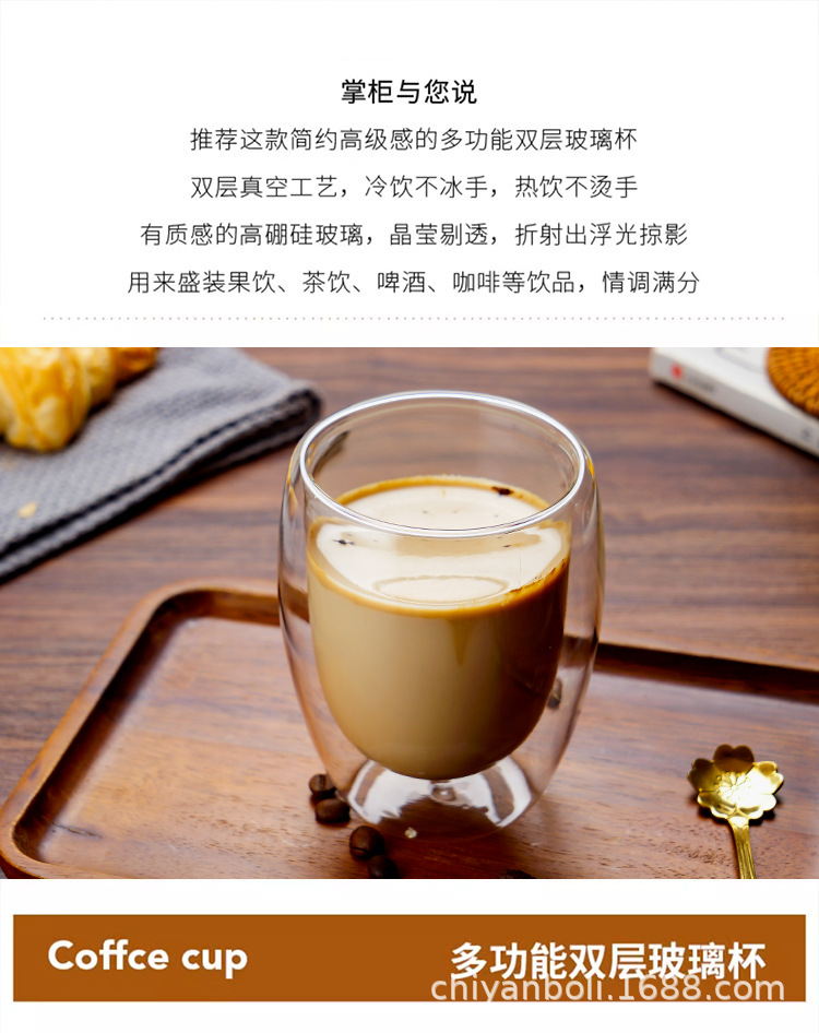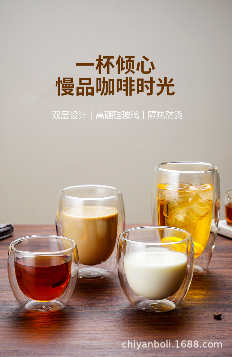 高硼珪酸ガラス二重構造カップ、高級感のある断熱コーヒーカップ、冷たい飲み物用透明マグカップ、ミルクカップ、オフィス用耐熱カップ