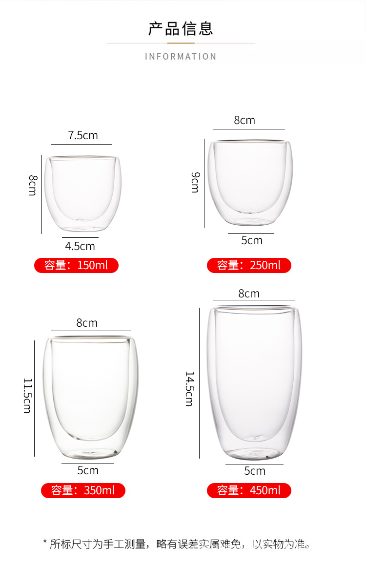 二重カップコーヒーカップマグカップ透明ガラスミルクカップオフィス二重ガラスカップ