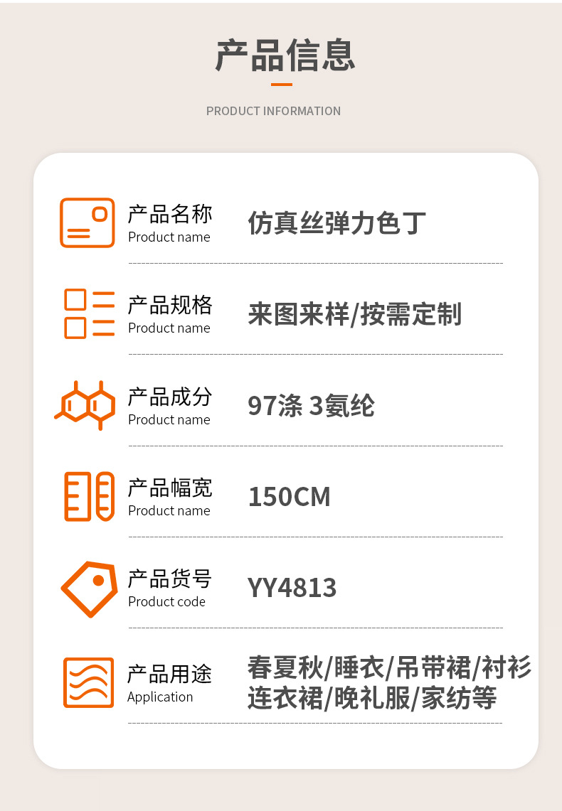 仿真丝有光弹力色丁布50*75D婚纱吊带礼服睡衣面料箱包装饰缎面布