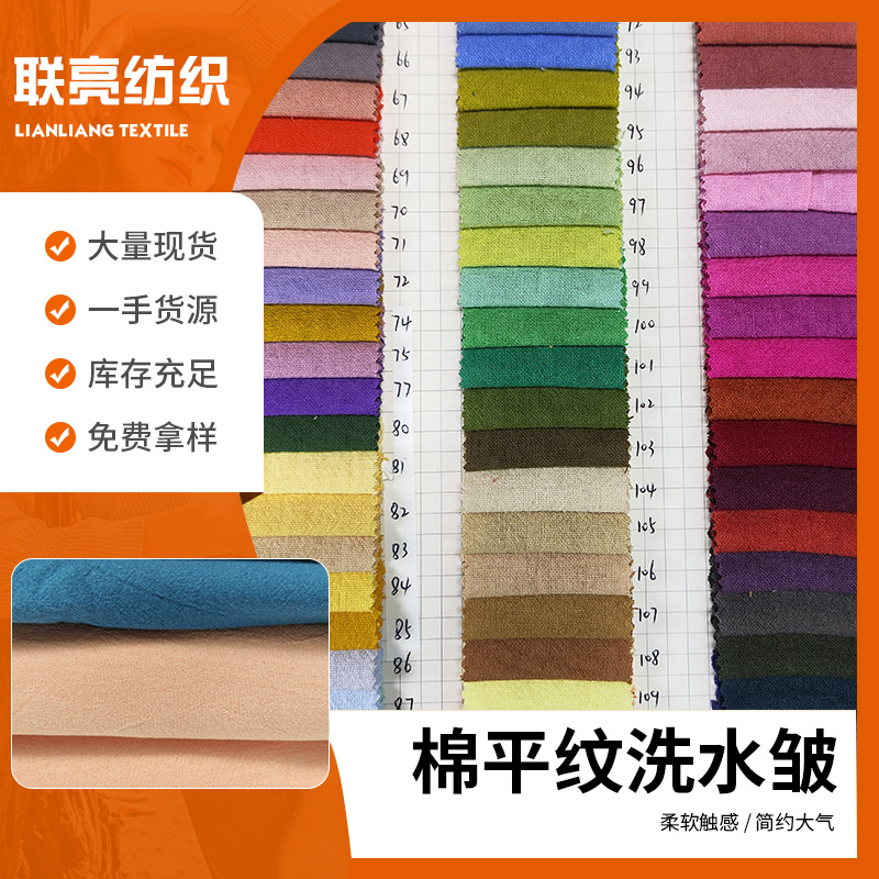 21本の水洗い綿の生地の平織りの砂洗いのしわの布は麻布の布帛の漢服の子供服のカジュアルな服装の男性のズボンのシャツに似せます。