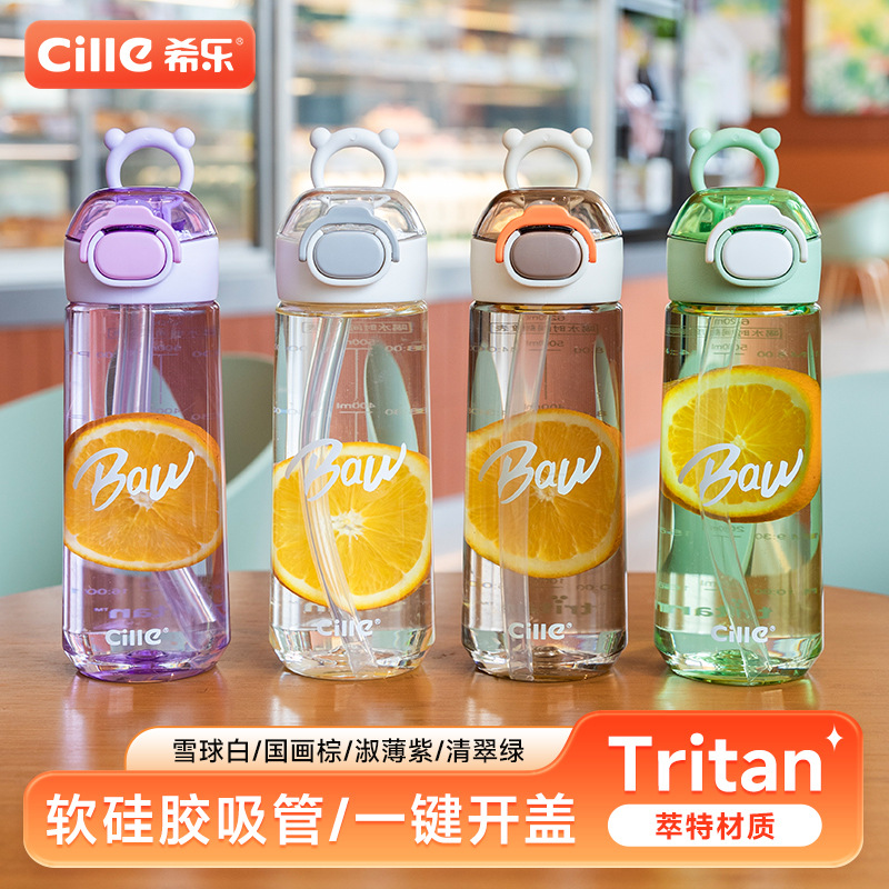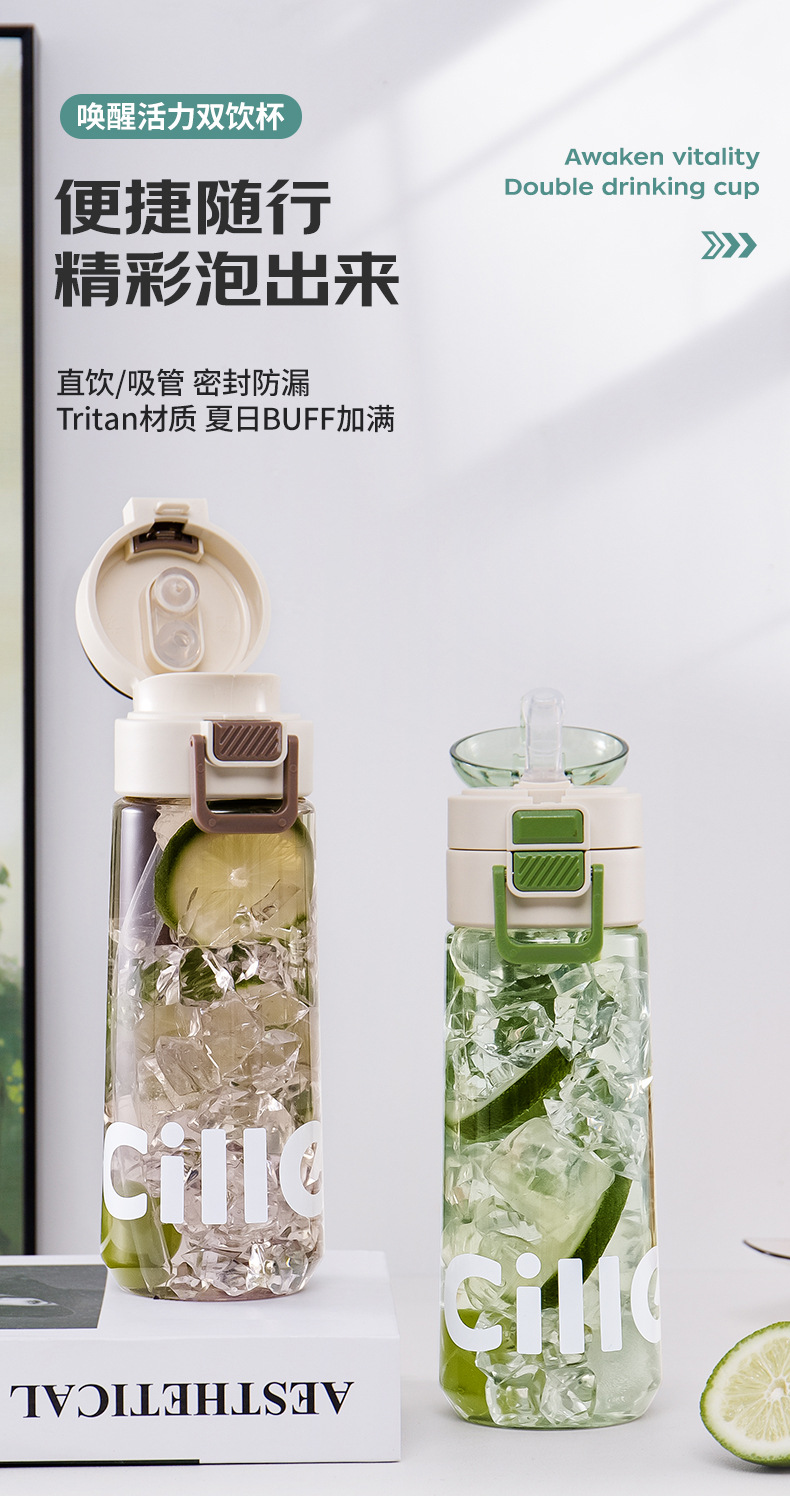 Cille/希楽コップ大容量ダブルドリンク口ストローコップ可爱い高颜値ポータブルカップ