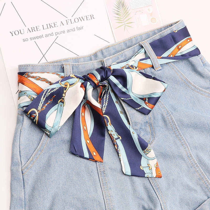 欧米のファッションの女性のリボンのベルトはスカートのシフォンの細くて狭いです。