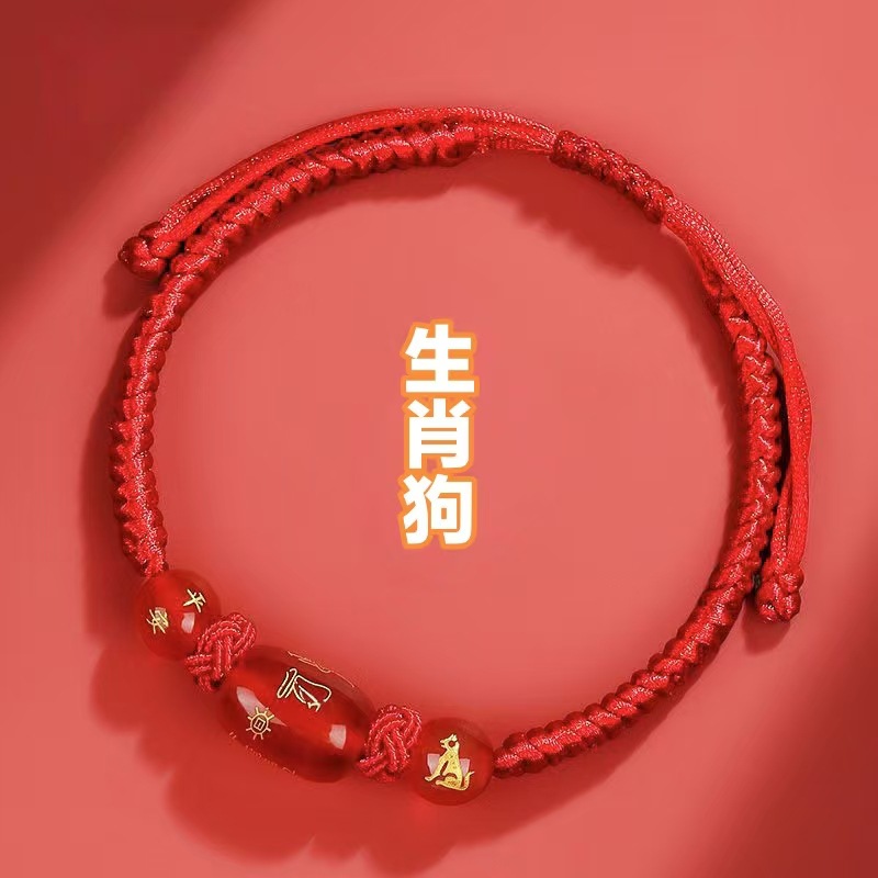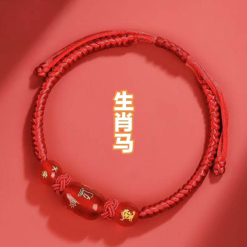 十二生肖瑪瑙手串本命年紅縄男女子学生カップルブレスレットアクセサリー龍馬鶏兎年手縄