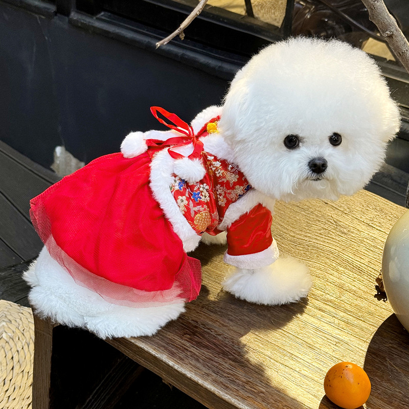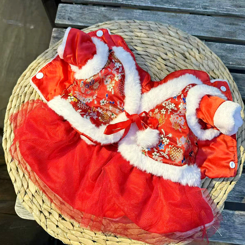 宮廷の新年の唐服のスカートの冬の子犬の服のテディは熊のペットの猫より新年のお祝いの秋冬服です。