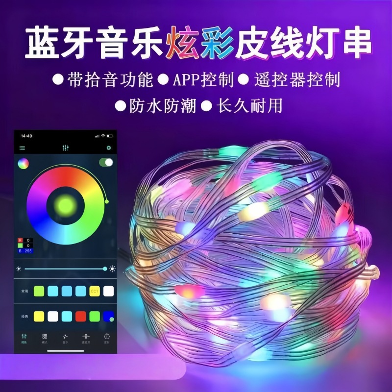 クロスボーダー直供クリスマスライト5v幻彩皮線ライトbluetooth APP音控串ライトネット赤雰囲気灯点控