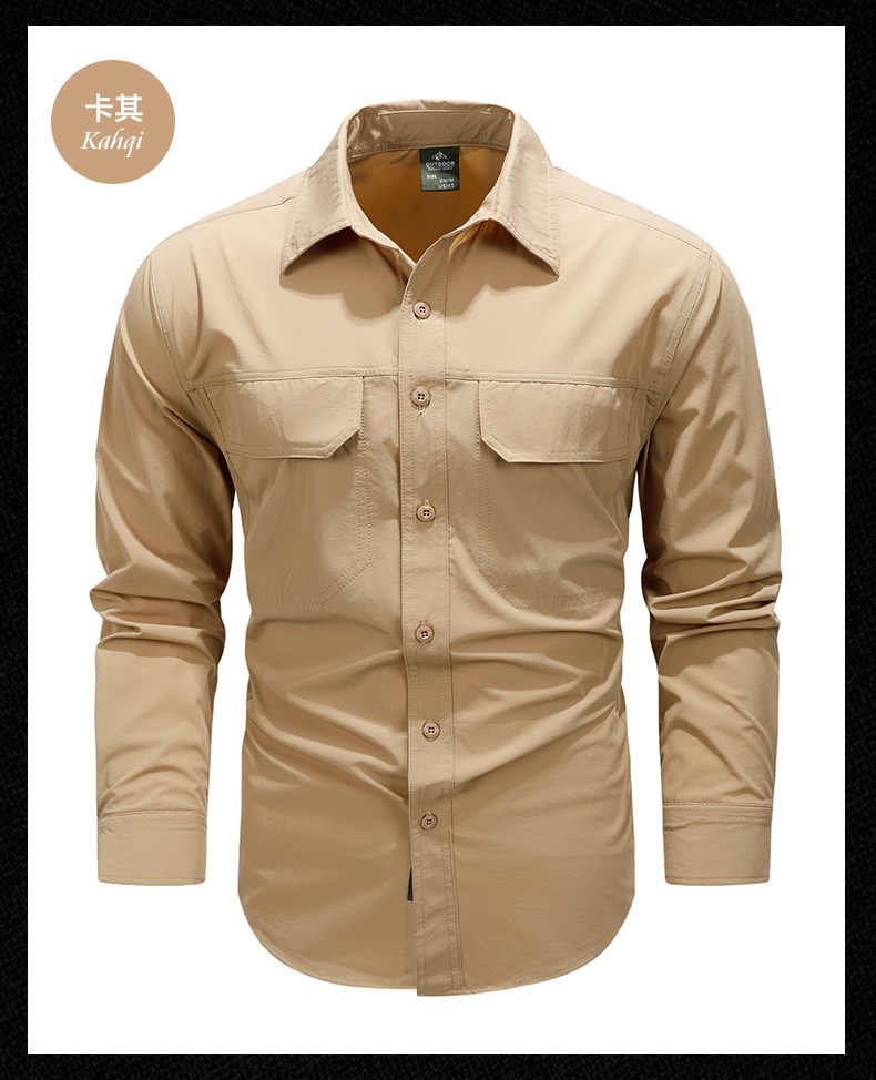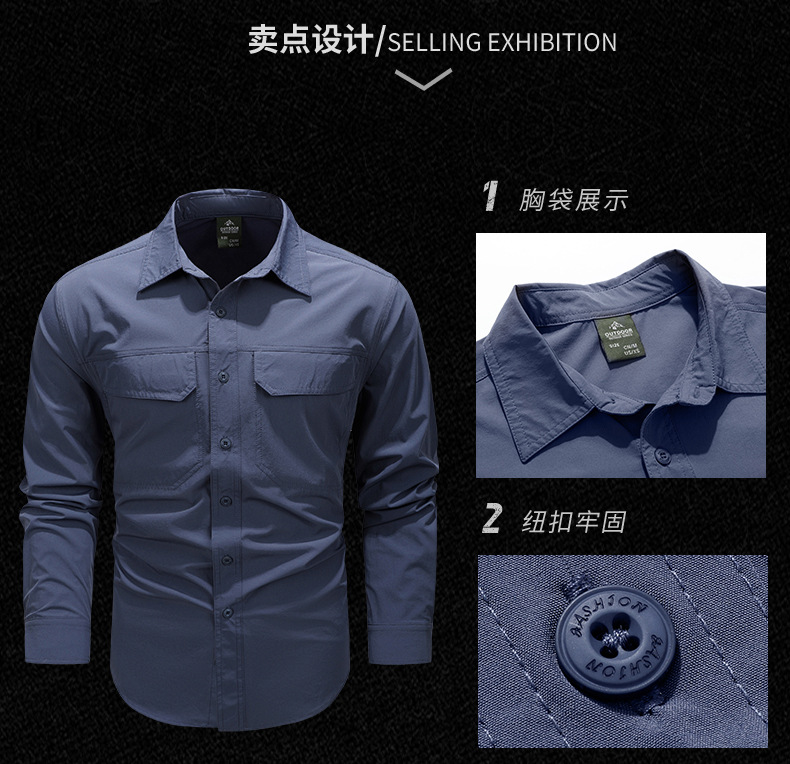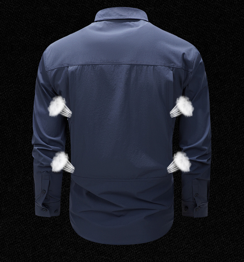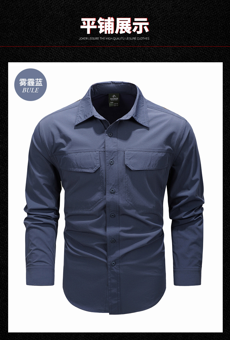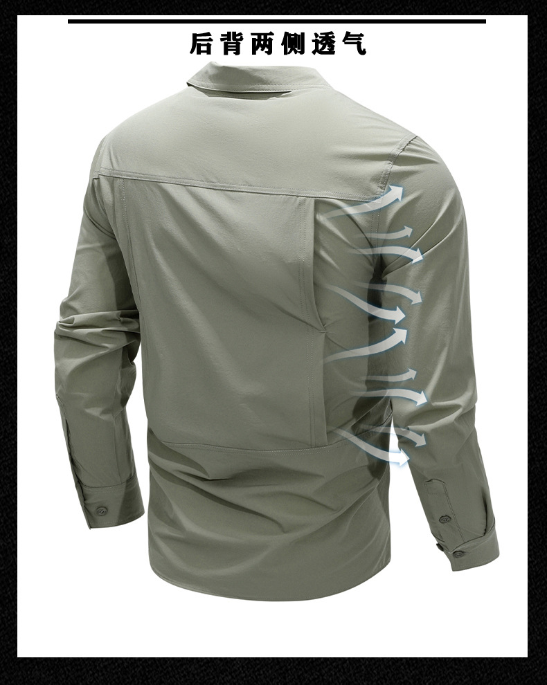 2025春新作速乾長袖シャツ 薄手伸縮性バック通気性ビッグポケットシャツ 258