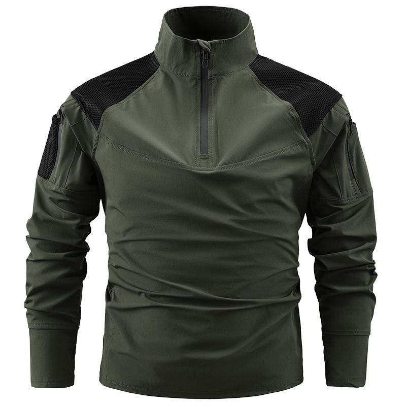 跨境新1/3拉链战术蛙服上衣男户外弹力军事立领多口袋长袖卫衣