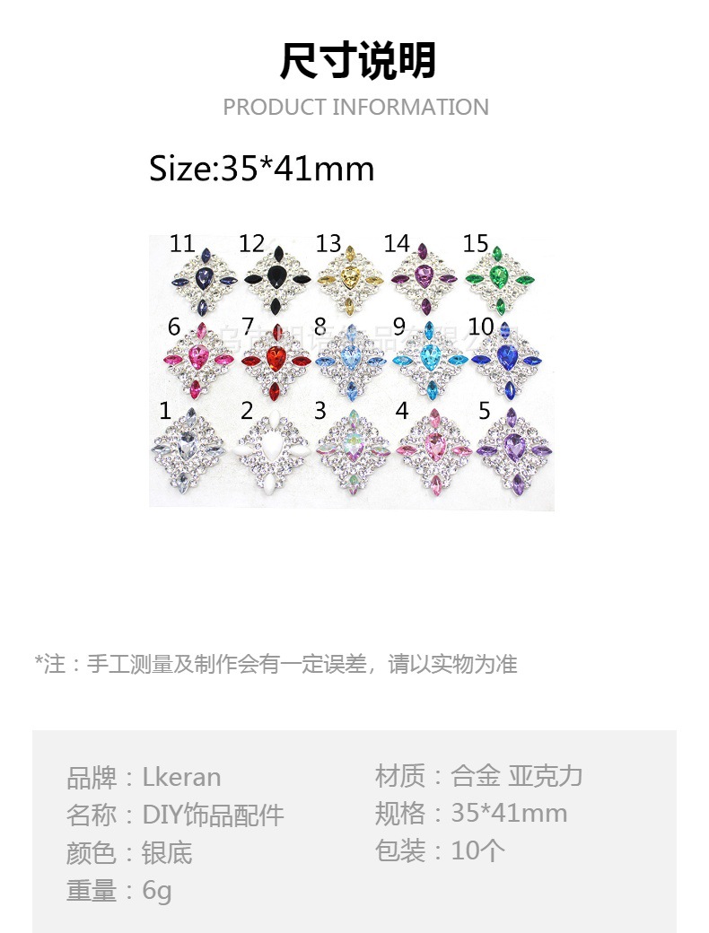 跨境新款时尚合金配饰菱形水钻扣饰品配件diy服饰发饰装饰材料