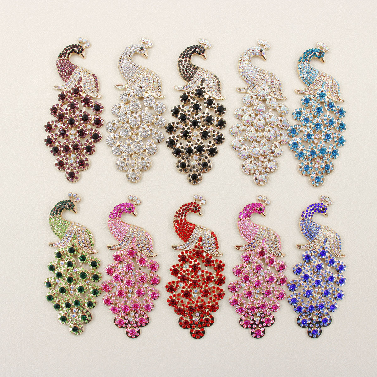 欧米の大きい赤い水晶の孔雀のブローチの動物のドリルの女性の胸の花のファッションのピンは光の服装のアクセサリーを防ぎます。