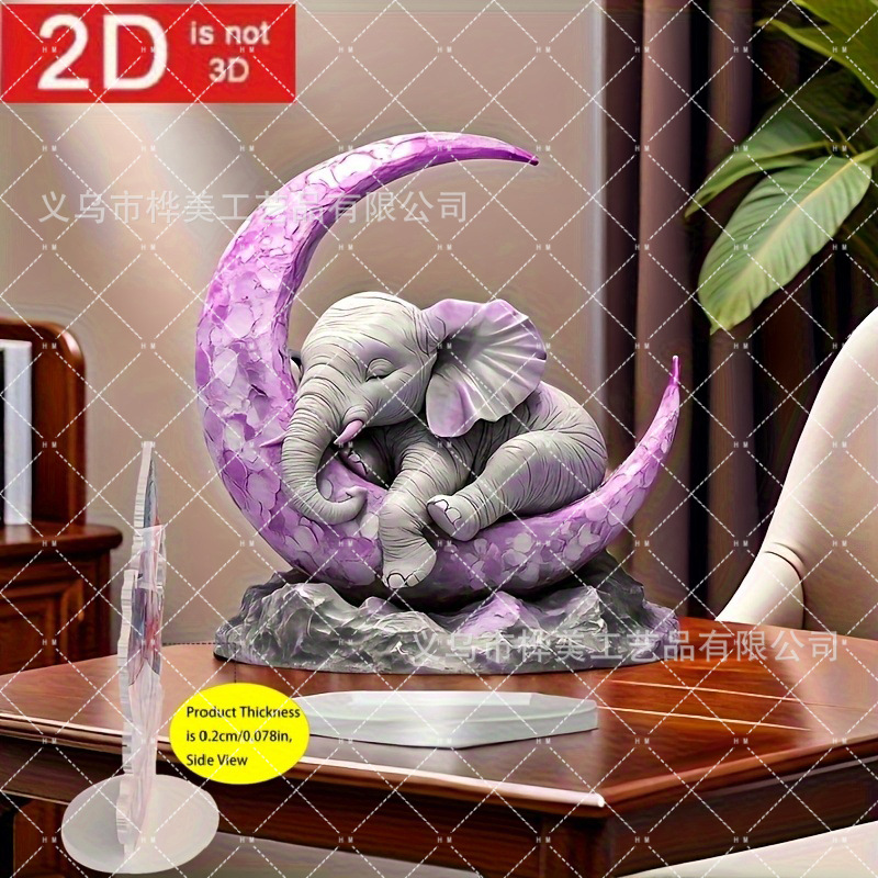 跨境新款节日大象趴在月亮上睡觉2D亚克力摆件家居卧室桌面摆件