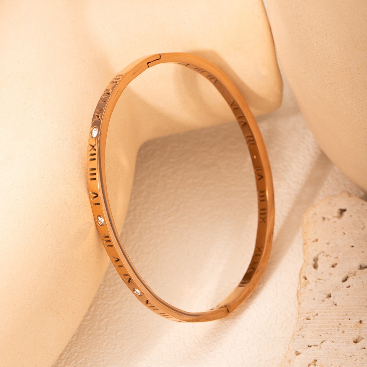 时尚不锈钢罗马数字卡扣手镯镶钻18k金精致高级感网红同款不掉色