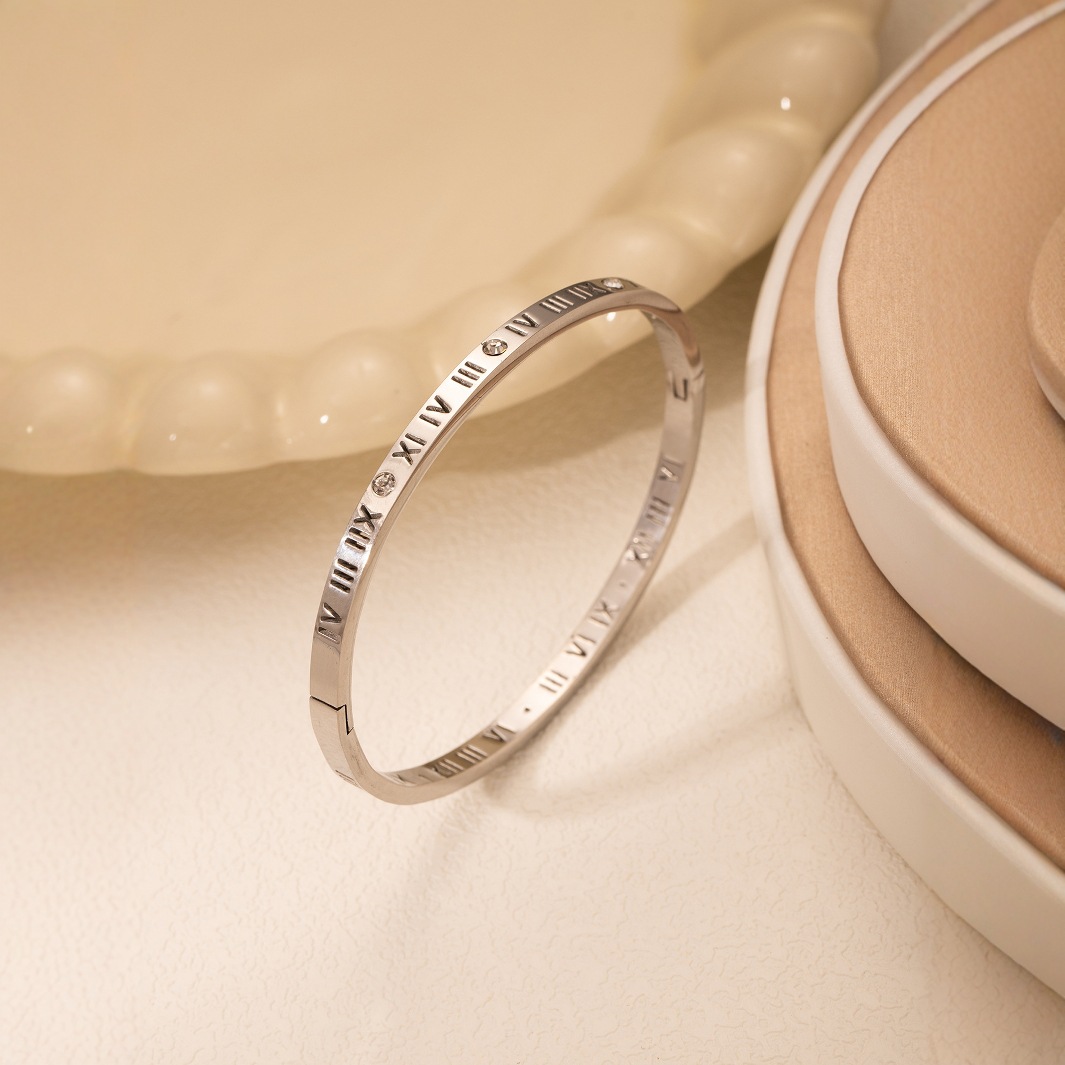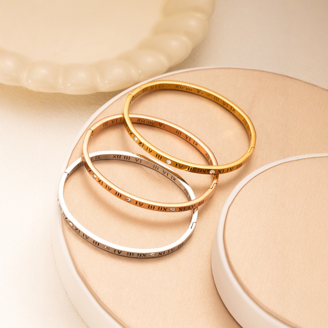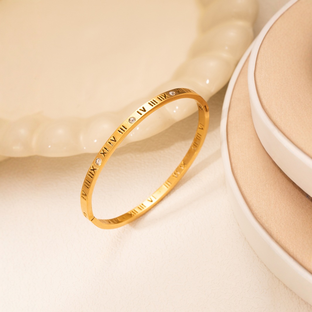 跨境新款罗马数字镶钻钛钢手镯时尚百搭不掉色手环源头工厂可定