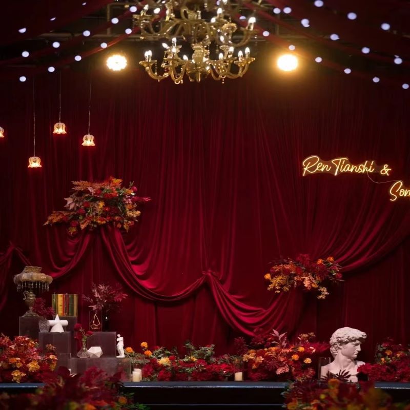 金のベルベットの背景の布のカーテンのウェディングカーテンのワインの赤い金のベルベットのカーテンの厚い底の舞台の装飾の背景の布のカーテン