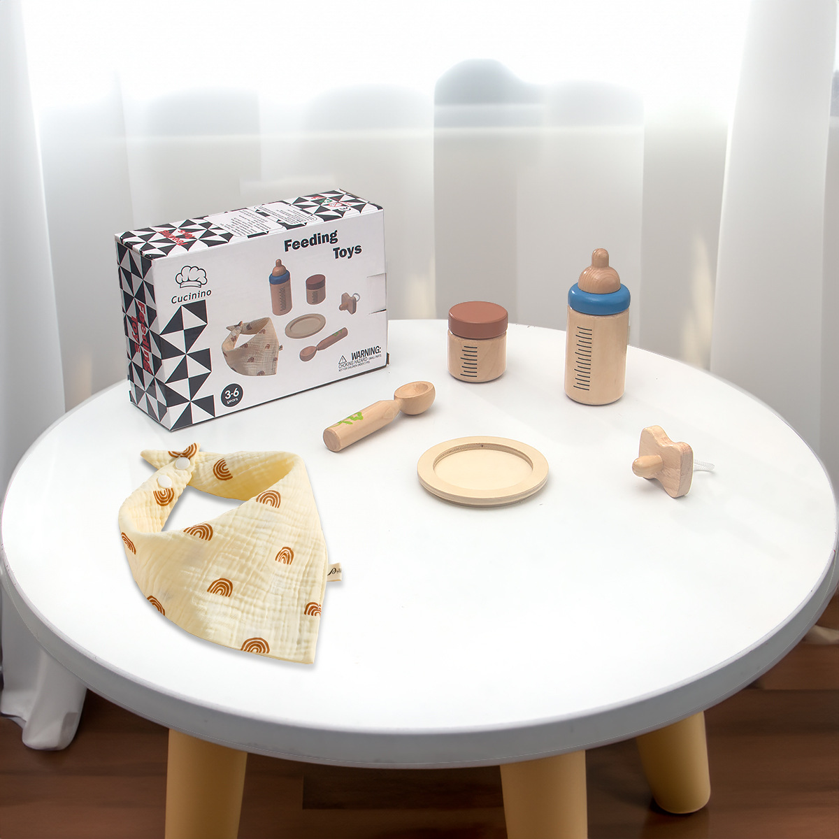国境を越えた子供の木製のままごとのシミュレーション哺乳瓶の給餌セットの赤ちゃんの役は親子のインタラクティブなおもちゃを演じます。