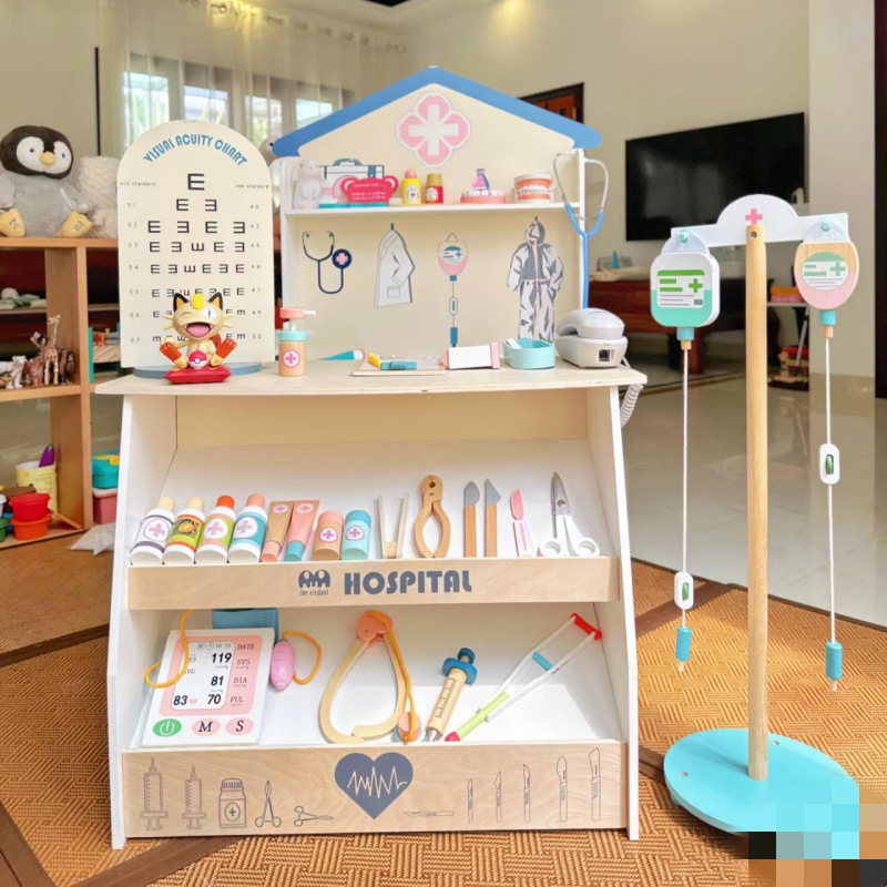 子供の医者のおもちゃセット男の子女の子医疗箱ナースカートおまままごと聴诊器血圧计木制