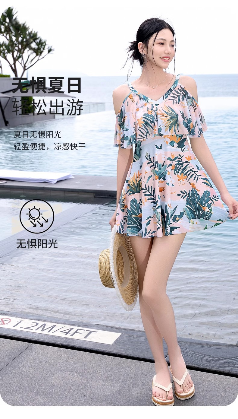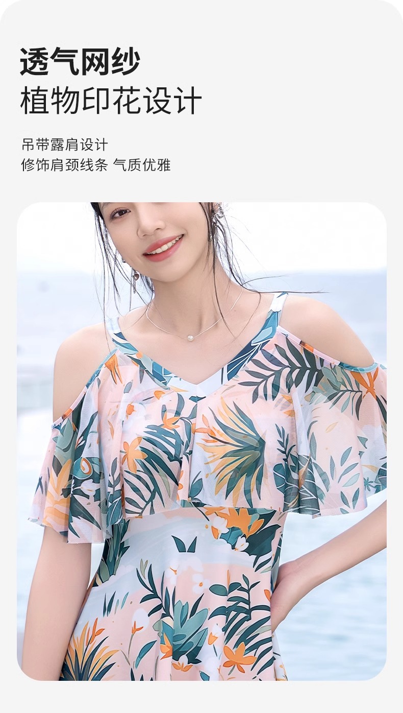 女性用水着 2025 新しいハイエンドワンピーススカートスタイルの水着で、肉をカバーし、痩身、温泉旅行の写真撮影に最適です。