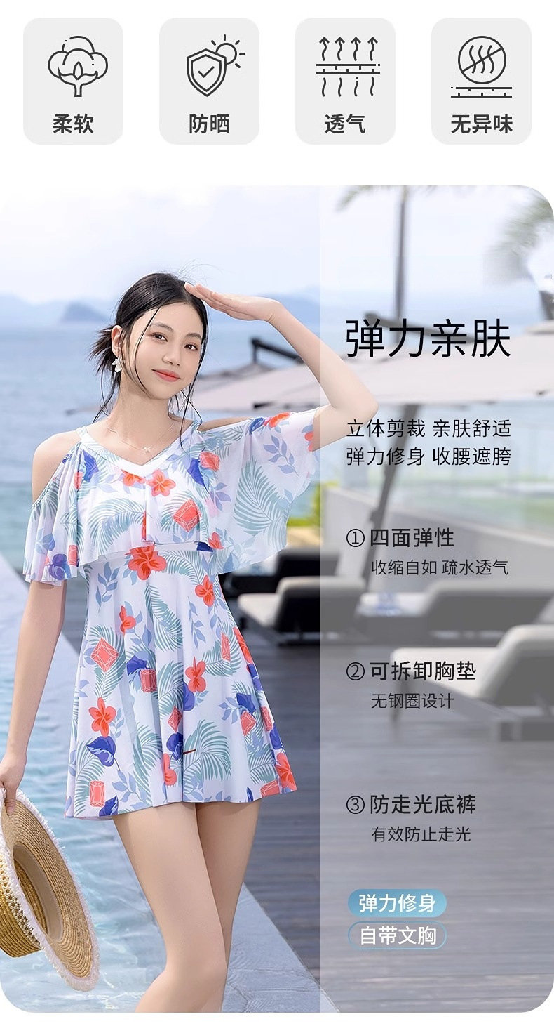 回力水着女性モデル2025新型連体微太った女の子が肉を隠して痩せている温泉休暇水着卸売り