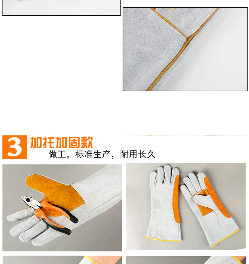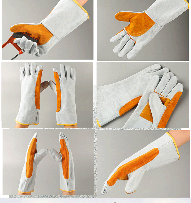 百川756長型電気溶接手袋純牛革耐高温防熱耐摩耗溶接工溶接断熱補強手袋