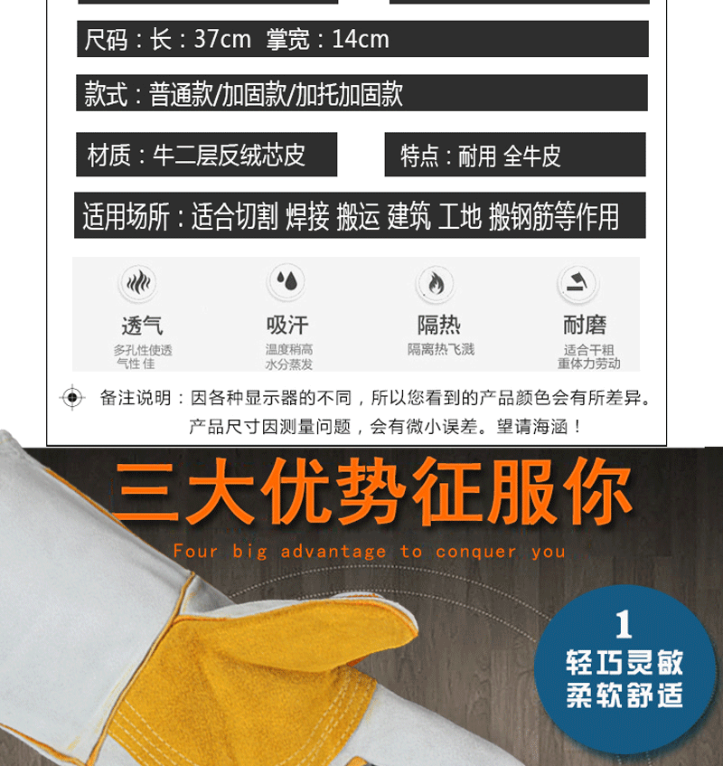 仕様とモデル XL-Baichuan 756 溶接手袋,XL-36CM 二重層と黄色のモップ,XL-36CM 単層プラス黄色モップ,XL-ゴールデンドライバー溶接手袋,XL-ライトカラーセブンナイフ(ライトカラーランダム),XL - 第一層牛革溶接手袋