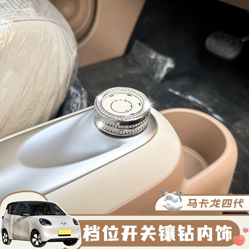 五菱宏光四世代マカロンのシフトスイッチにドリル合金の装飾を入れて25種類のマカロンの内装のドリルを貼ります。