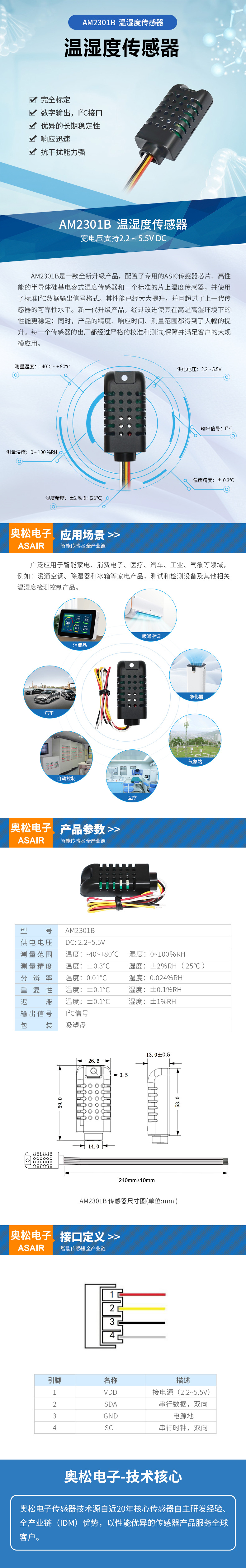ASAIR奥松AM2301B集積型温湿度センサーモジュールIICデジタル信号耐ノイズ強