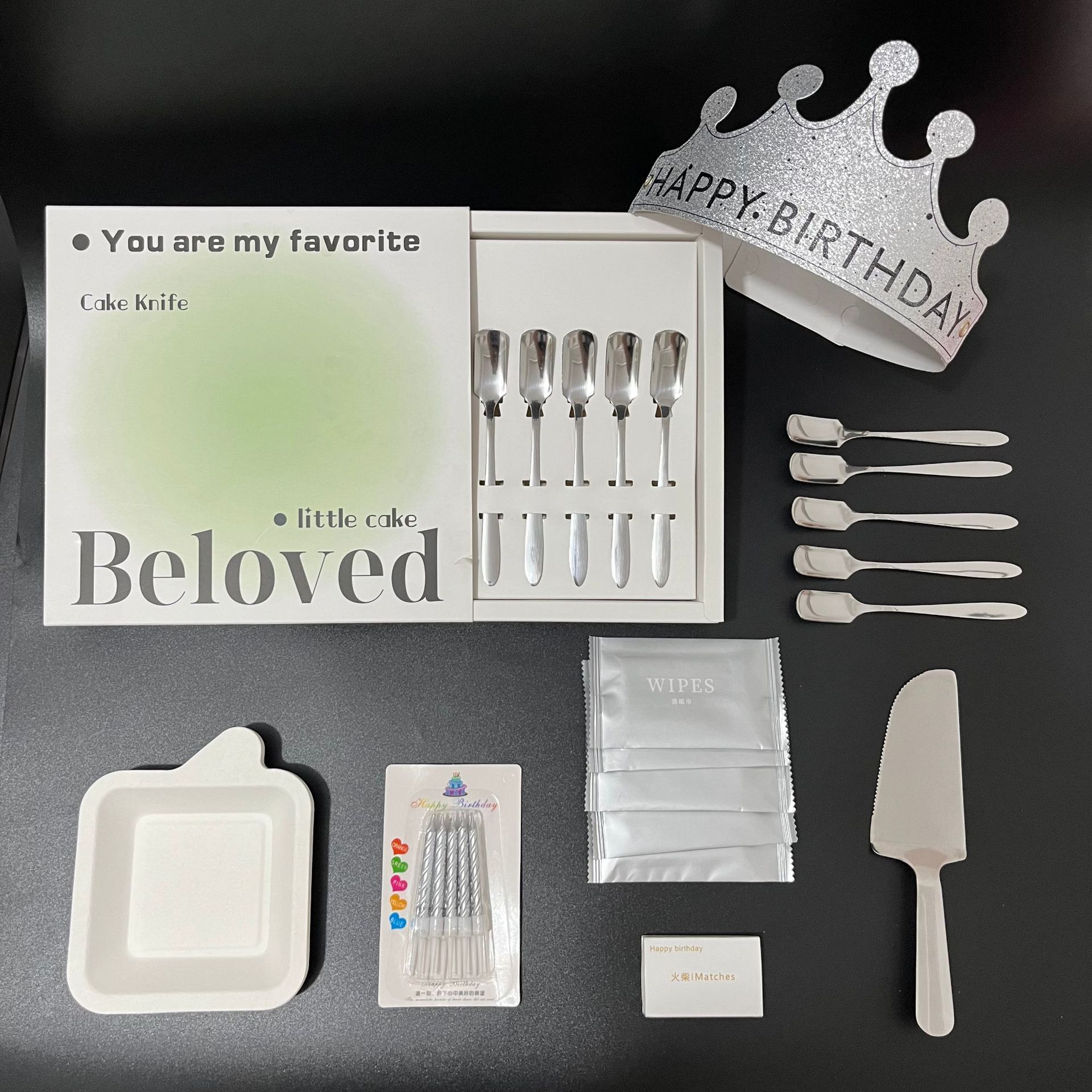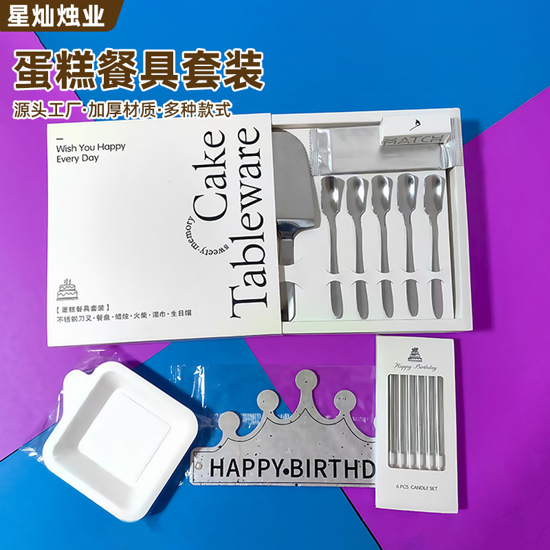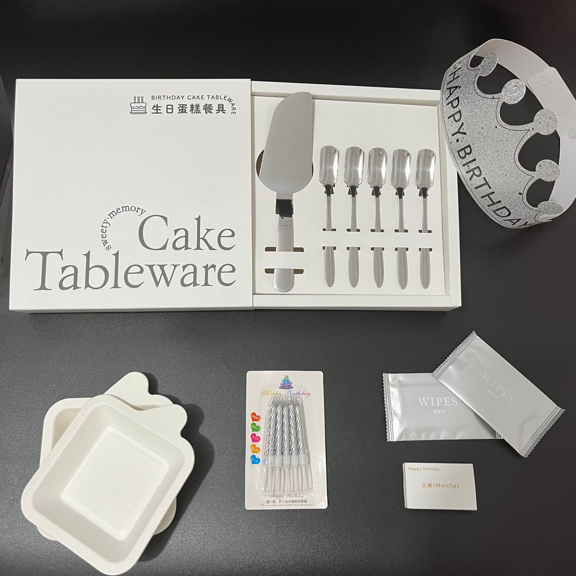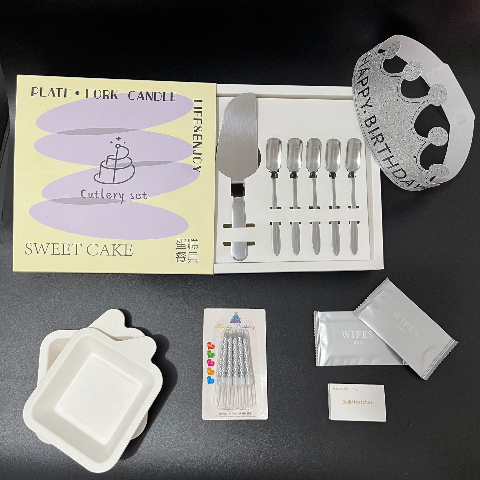生日蛋糕不锈钢餐具套装高档网红餐具套装七件套五人份蜡烛生日帽