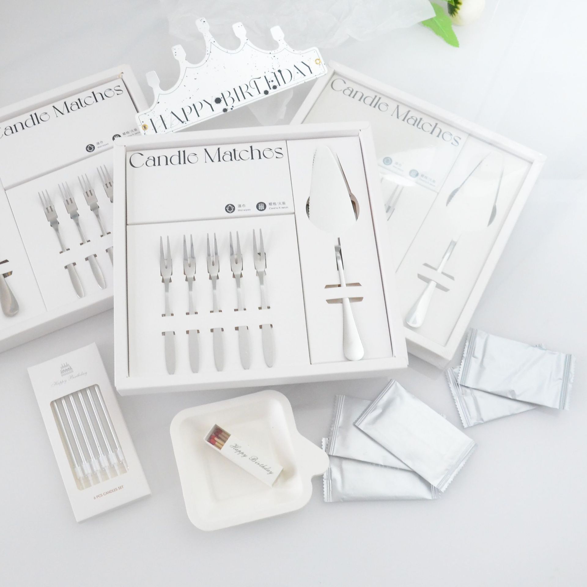 使い捨てケーキ食器、高級ギフトボックス、ステンレス製カトラリーセット、ケーキカトラリー、キャンドル、北欧風カトラリー
