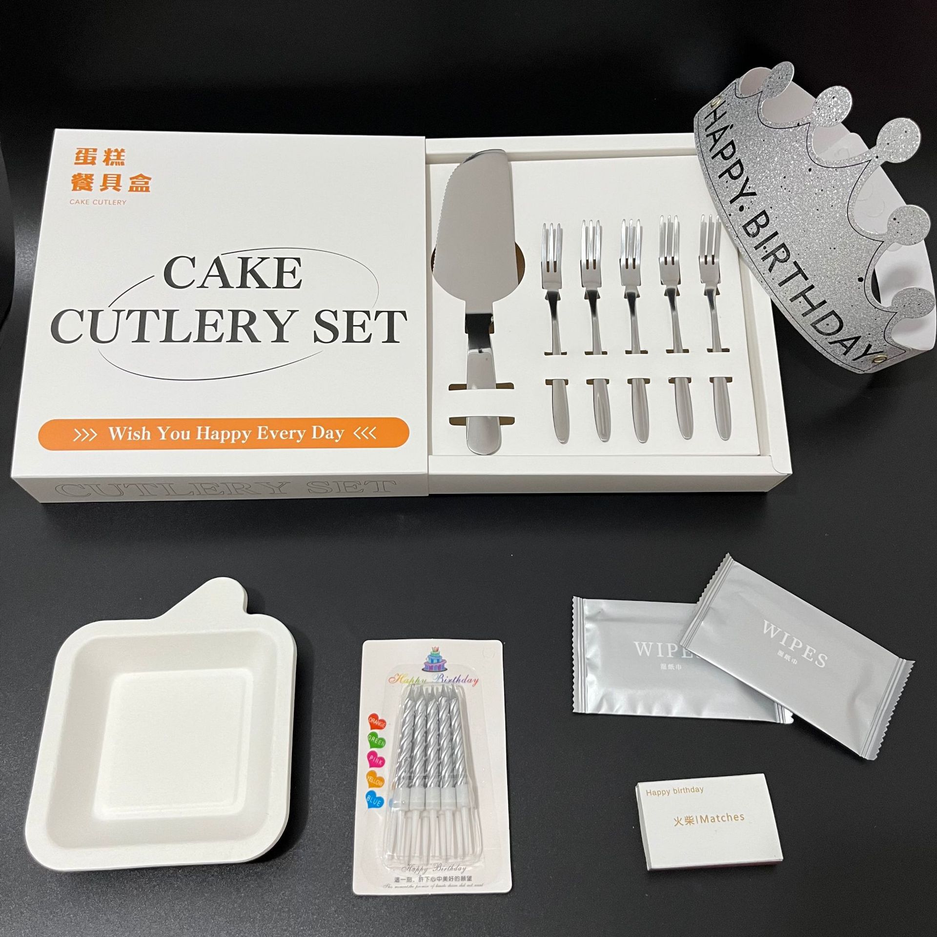 不锈钢餐具生日蛋糕餐具套盒一次性蛋糕刀叉盘组合七件套可定logo