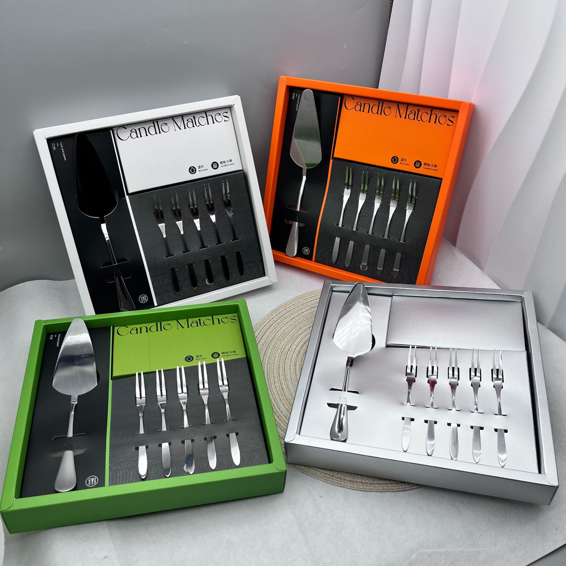 不锈钢餐具套盒生日蛋糕刀叉高端刀叉盘餐具七合一组合