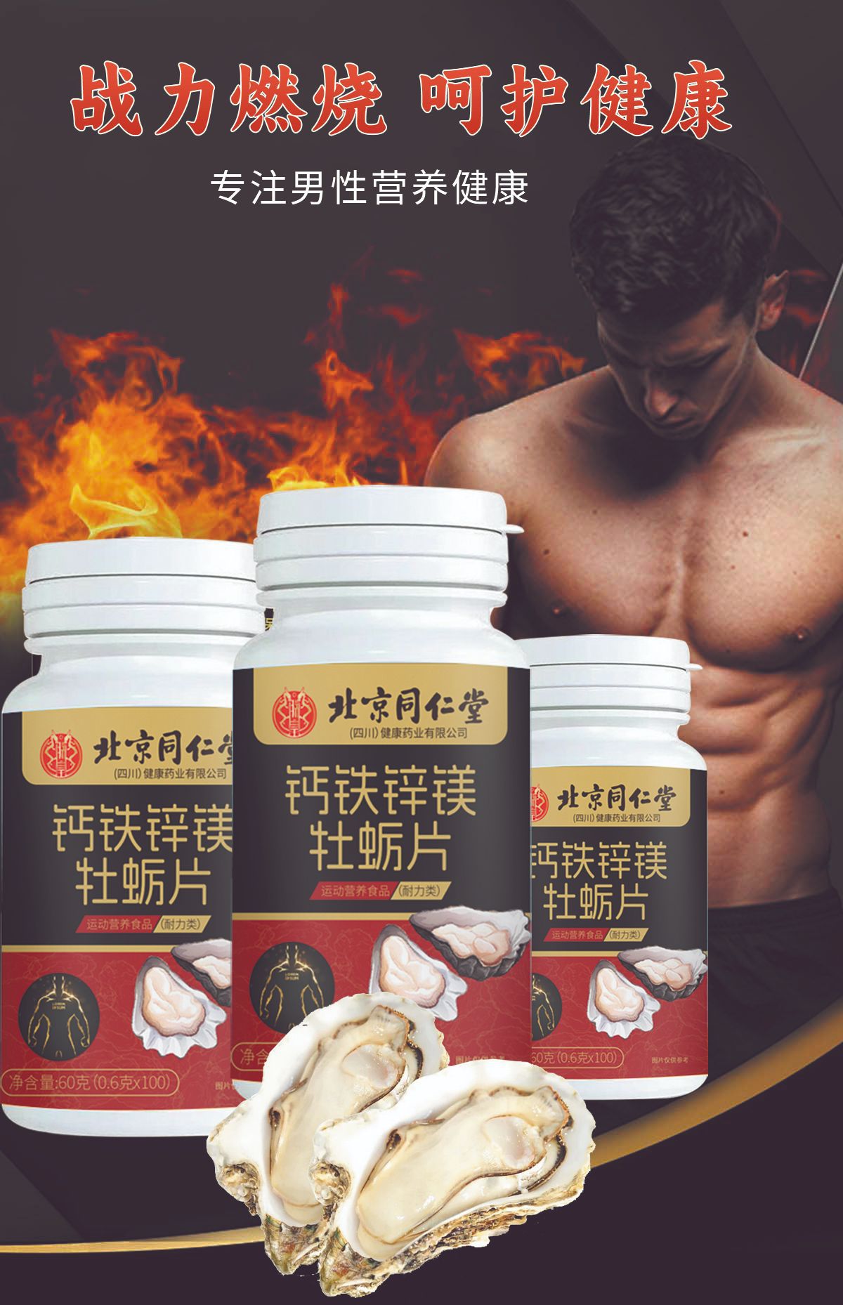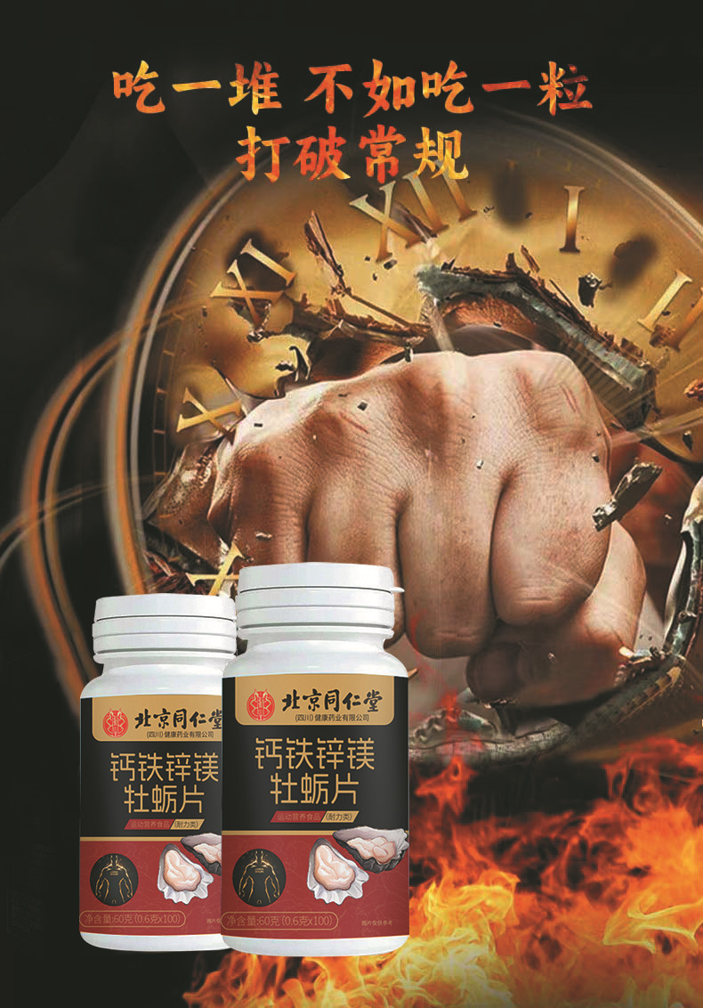 北京同仁堂カルシウム鉄亜鉛マグネシウム牡蠣片成人亜鉛マグネシウム片牡蠣片現物無痕秒発高克数