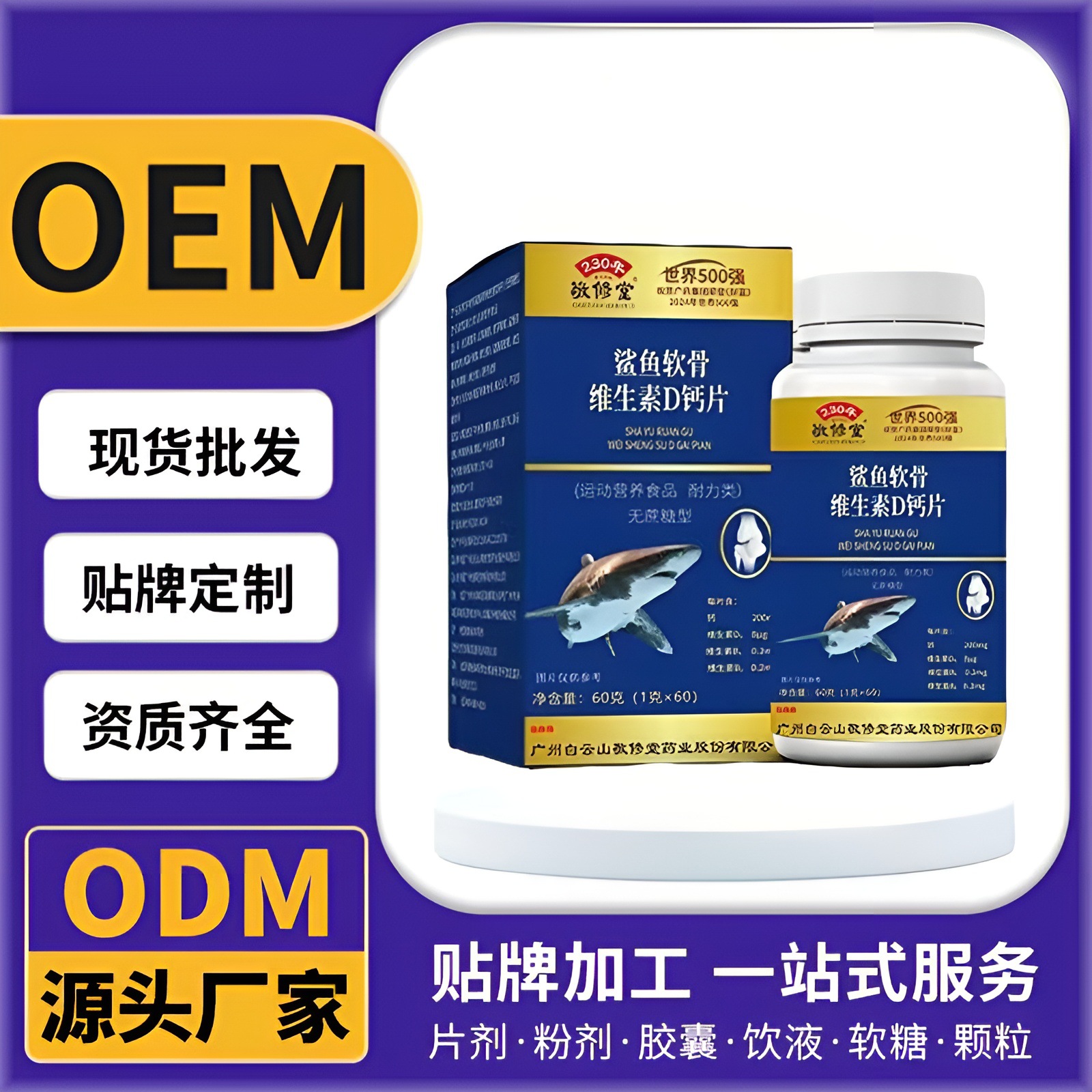 敬修堂中老年鲨鱼软骨维生素D钙片骨骼碳酸维生素无蔗糖钙60片