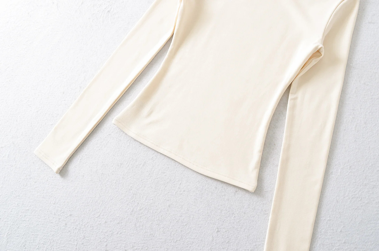 2024秋冬の新型アメリカ風ベルベット高襟長袖シャツ女ギャルは痩せている長袖tシャツ