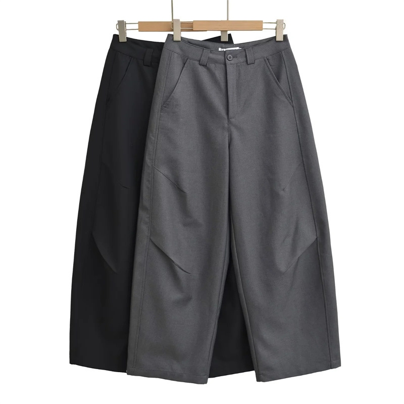 美式复古褶皱弯刀西装裤2025秋季新款时尚宽松显瘦百搭直筒裤长裤