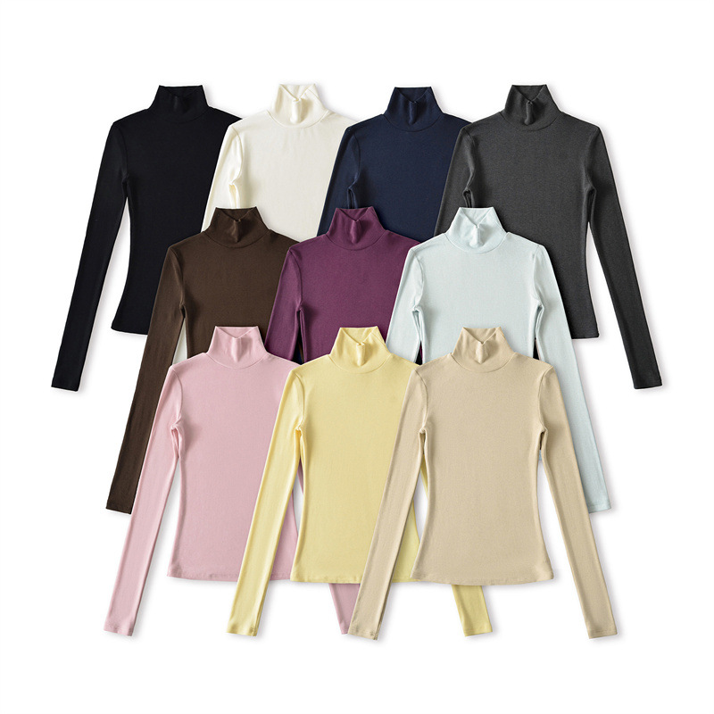 简约纯色高领羊毛长袖打底衫女秋季时尚百搭修身显瘦内搭长袖T恤