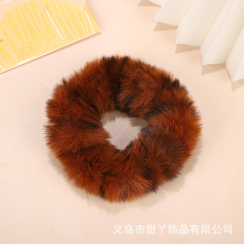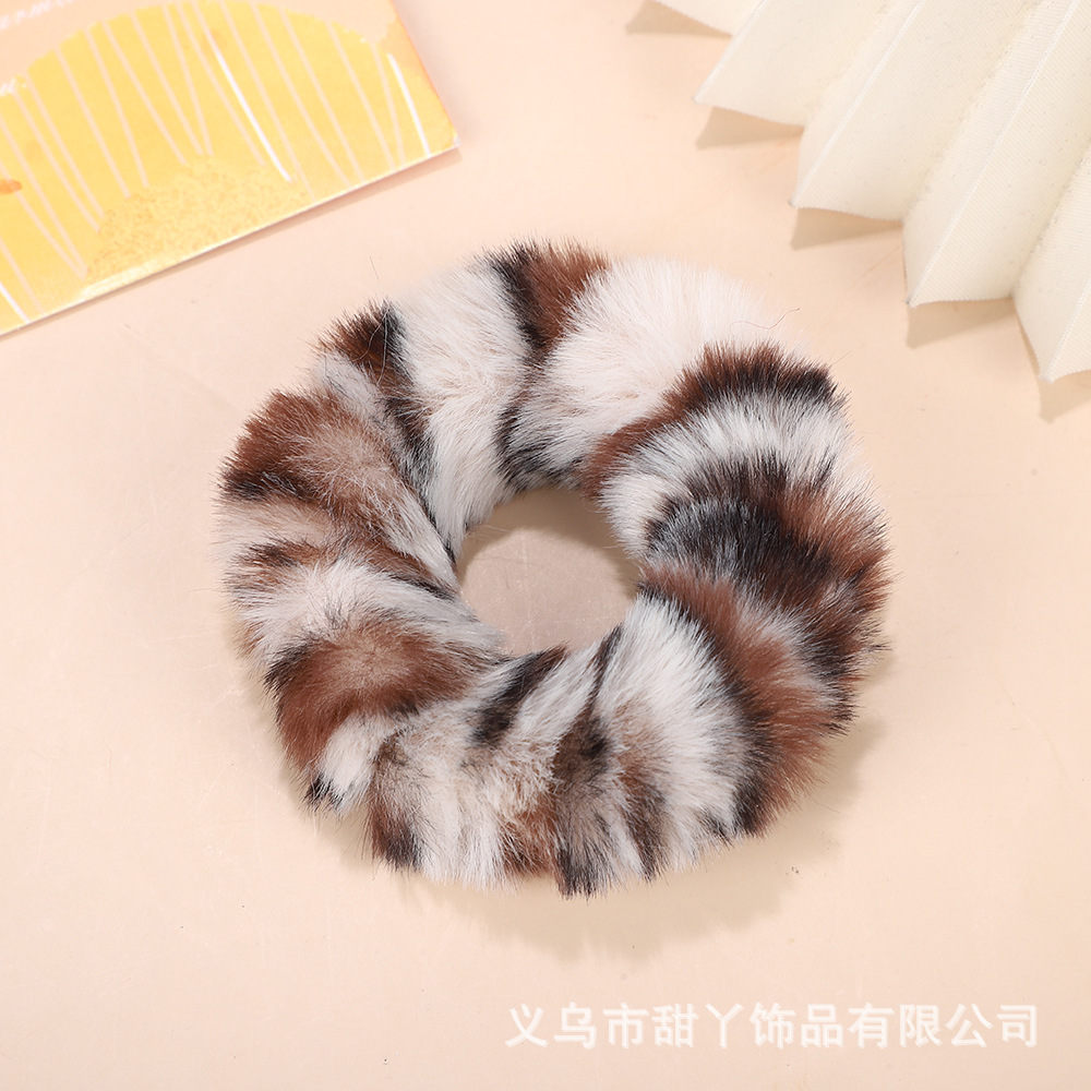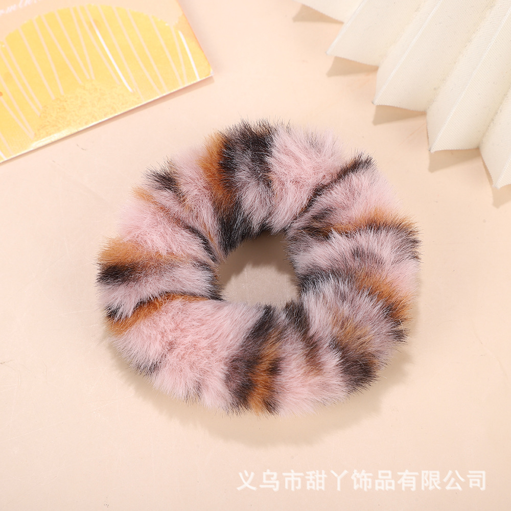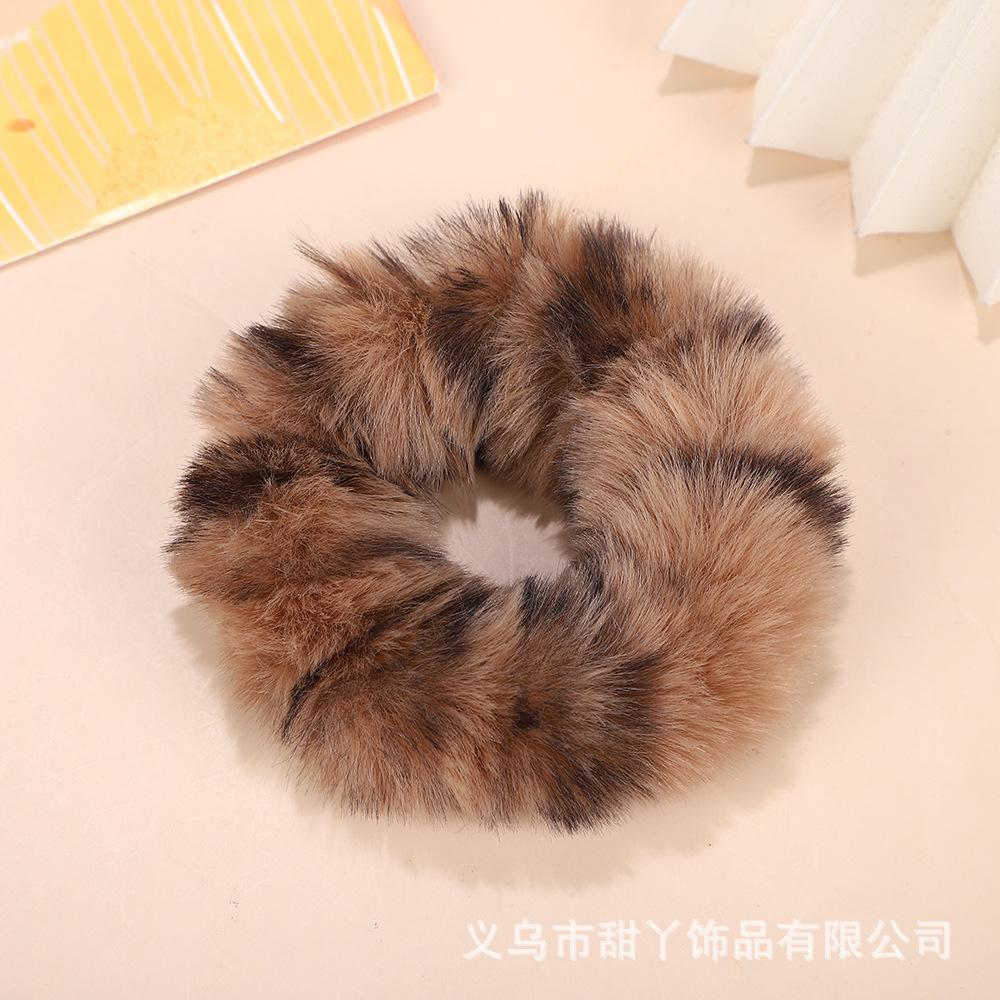 锌琦发饰新款秋冬豹纹彩色毛绒高弹力大肠发圈女欧美时尚扎发头绳
